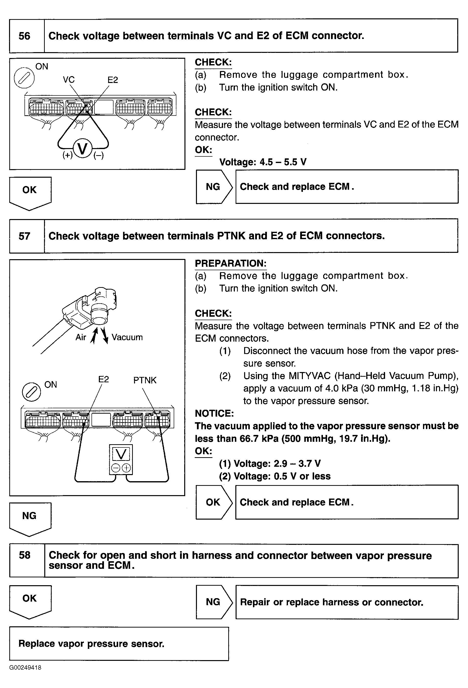 Fig 21: DTCs P0441 & P0446 Diagnostic Procedure Using Toyota Hand Held Tester (Steps 56-58)
