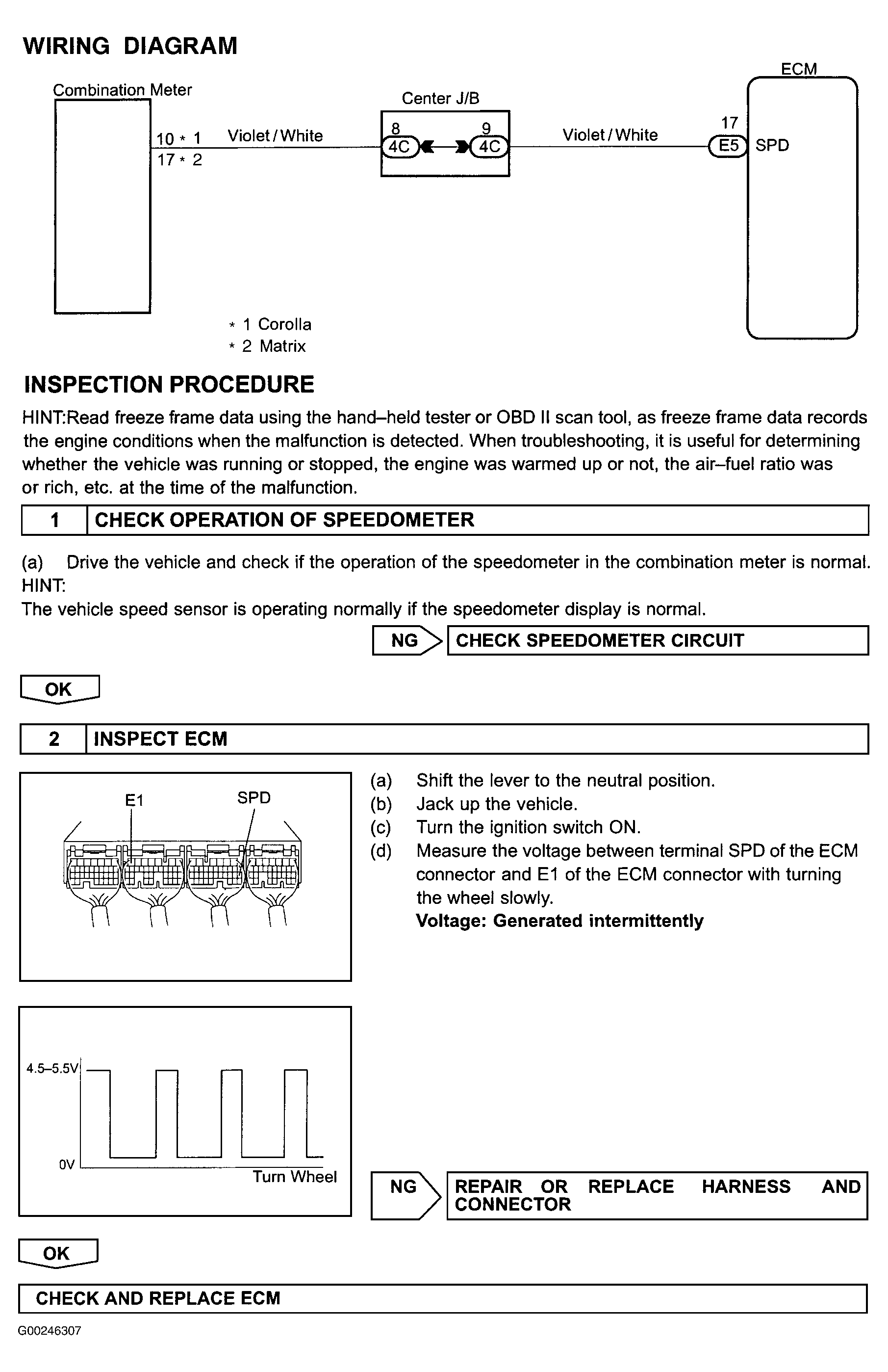 For diagnosis and repair, see Fig 1. To check speedometer circuit, see appropriate INSTRUMENT PANELS article in ACCESSORIES & EQUIPMENT. To check ECM inputs and outputs, see PIN VOLTAGE CHARTS article. To replace ECM, see REMOVAL & INSTALLATION - 4-CYLINDER article.