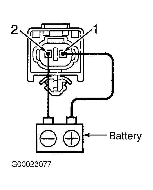 Using jumper wires, connect positive battery power to terminal No. 1 and negative battery power to terminal No. 2 of wireless door lock control system buzzer. See Fig 1. Buzzer should sound. If operation is not as specified, replace wireless door lock control system buzzer.