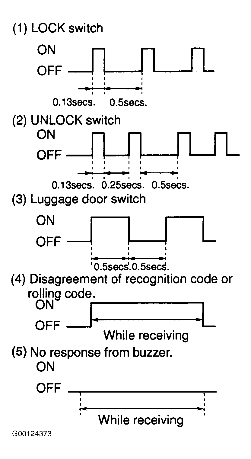 Home >> Toyota >> 2003 >> Matrix Base, FWD, Automatic >> Repair and Diagnosis >> External Pages >> Different car >> Section 130 (Keyless Entry Systems) >> Self-Diagnostic System >> Wireless Door Lock Control System Diagnostic Mode