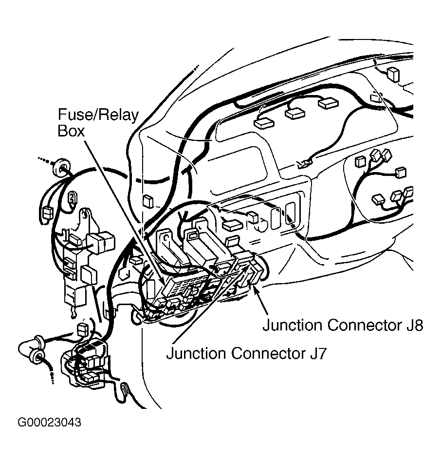 - Check for open and short in Gray wire and electrical connectors between terminal No. 7 at ECM electrical connector E7 and junction connectors J7 and J8. See WIRING DIAGRAMS article. Junction connectors J7 and J8 are located behind driver's side of instrument panel, near fuse/relay box. See Fig 1.