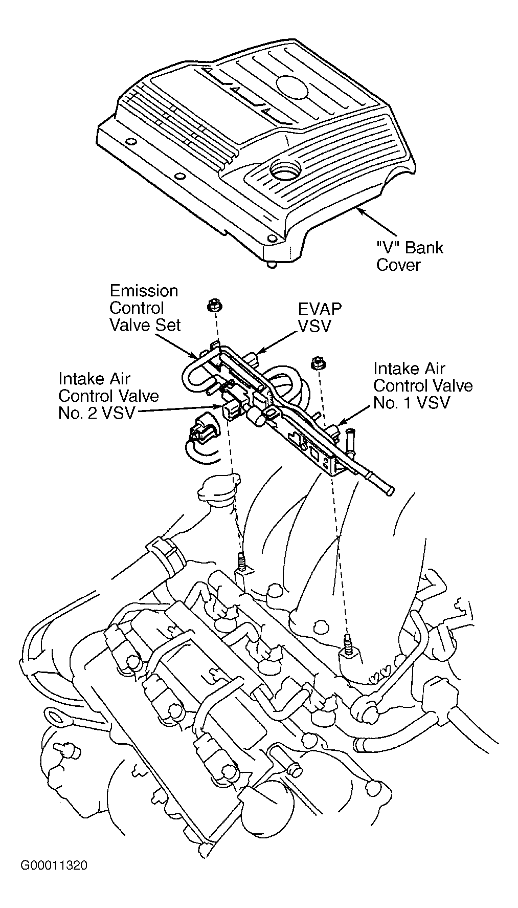 - To check for fuel injector operation, remove "V" bank cover on top of engine for access to fuel injectors. See Figure. Using stethoscope, listen for clicking sound at each fuel injector or use your finger to feel for fuel injector operation at fuel injector with engine cranking or with engine running. If fuel injector operation does not exist, check for loose connection at electrical connector at fuel injector. If electrical connector at fuel injector is okay, go to next step.