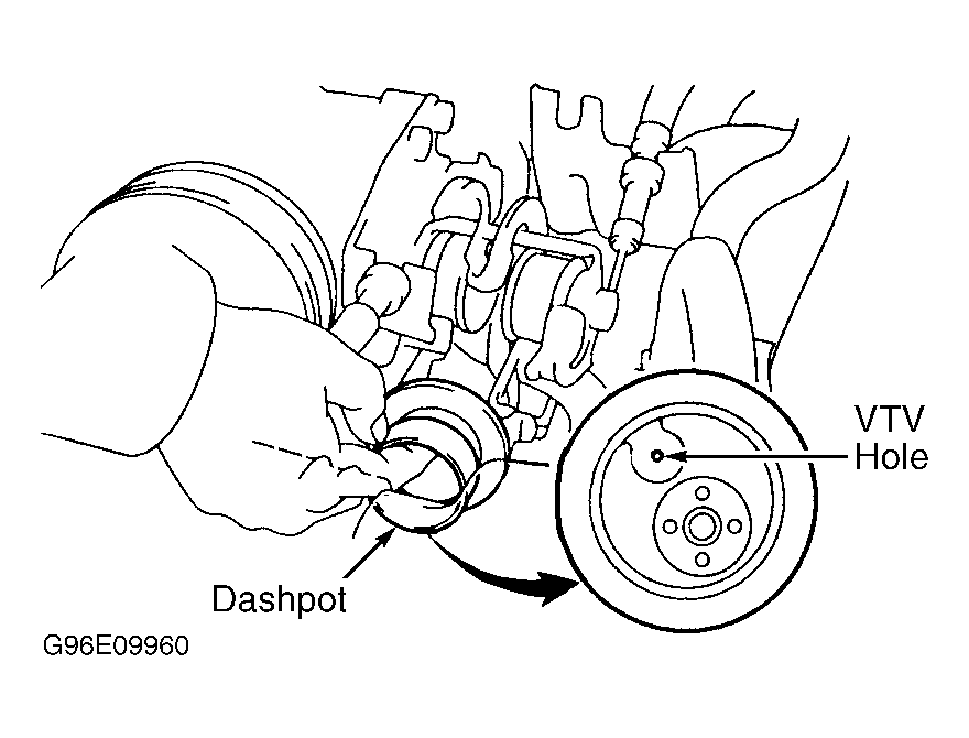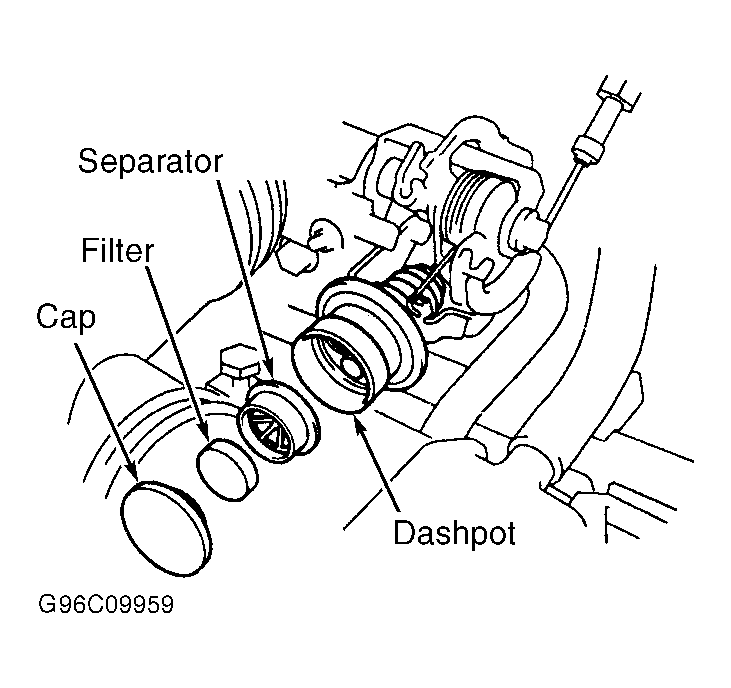 - Remove finger from VTV hole in dashpot. Ensure engine returns to proper idle speed in approximately one second. Install separator, filter and cap. Ensure filter is installed with the coarse surface facing outward (away from dashpot).