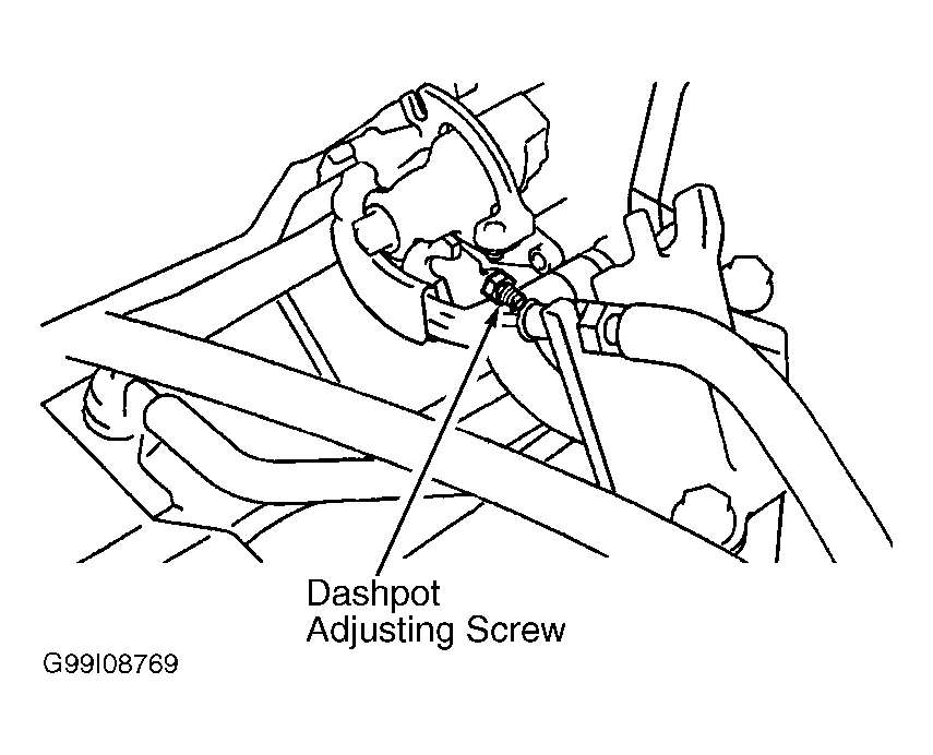 - Start engine. Warm engine to normal operating temperature. Ensure idle speed is within specification. See IDLE SPEED & MIXTURE in ON-VEHICLE ADJUSTMENTS - V6 & V8 article. Shut engine off. Remove cap, filter and separator from dashpot on throttle body. See Fig 1.