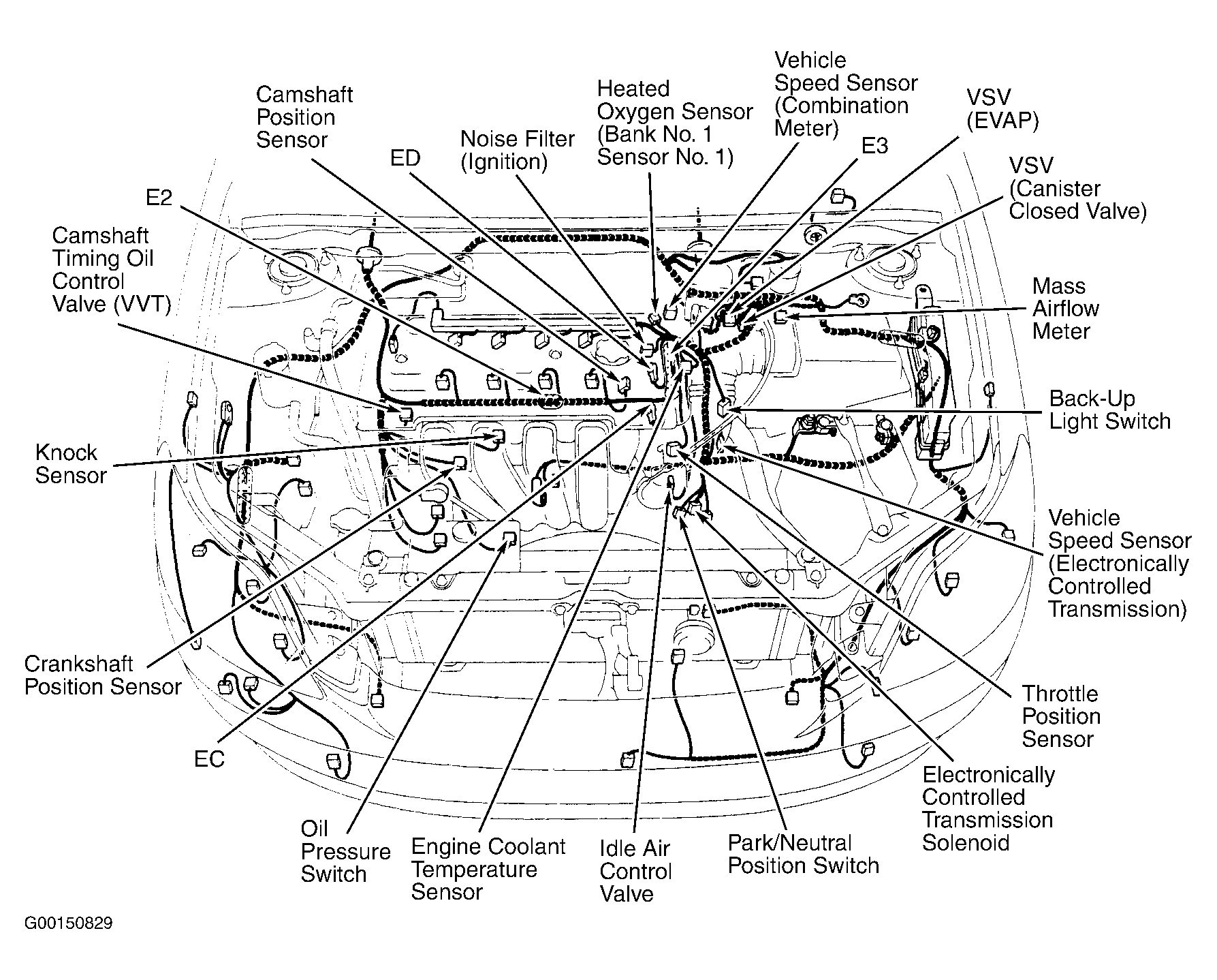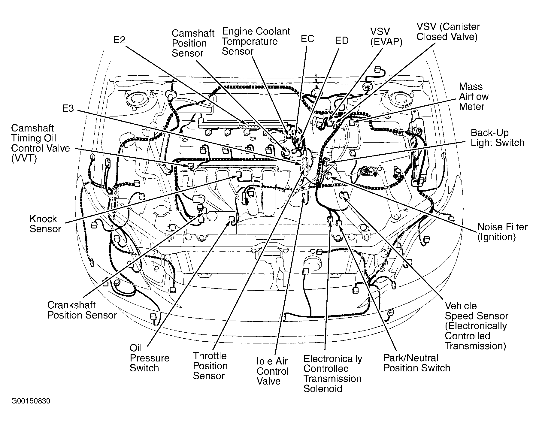 | E2 (XRS) | In engine harness, near breakout for ignition coil & igniter No. 3. See Figure. |