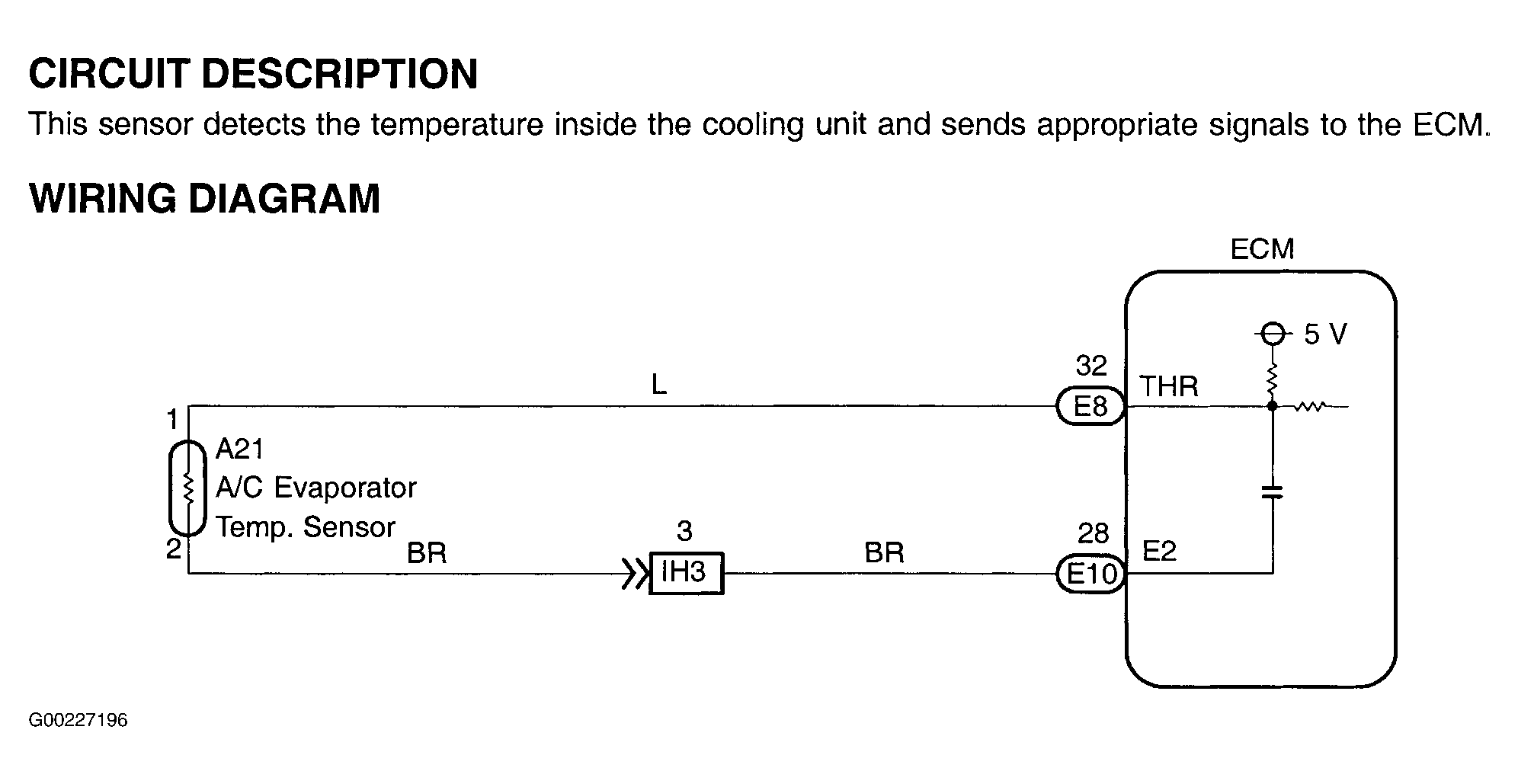 Fig 1: A/C Evaporator Temperature Sensor Circuit Description & Diagram (Camry Solara With Manual A/C)