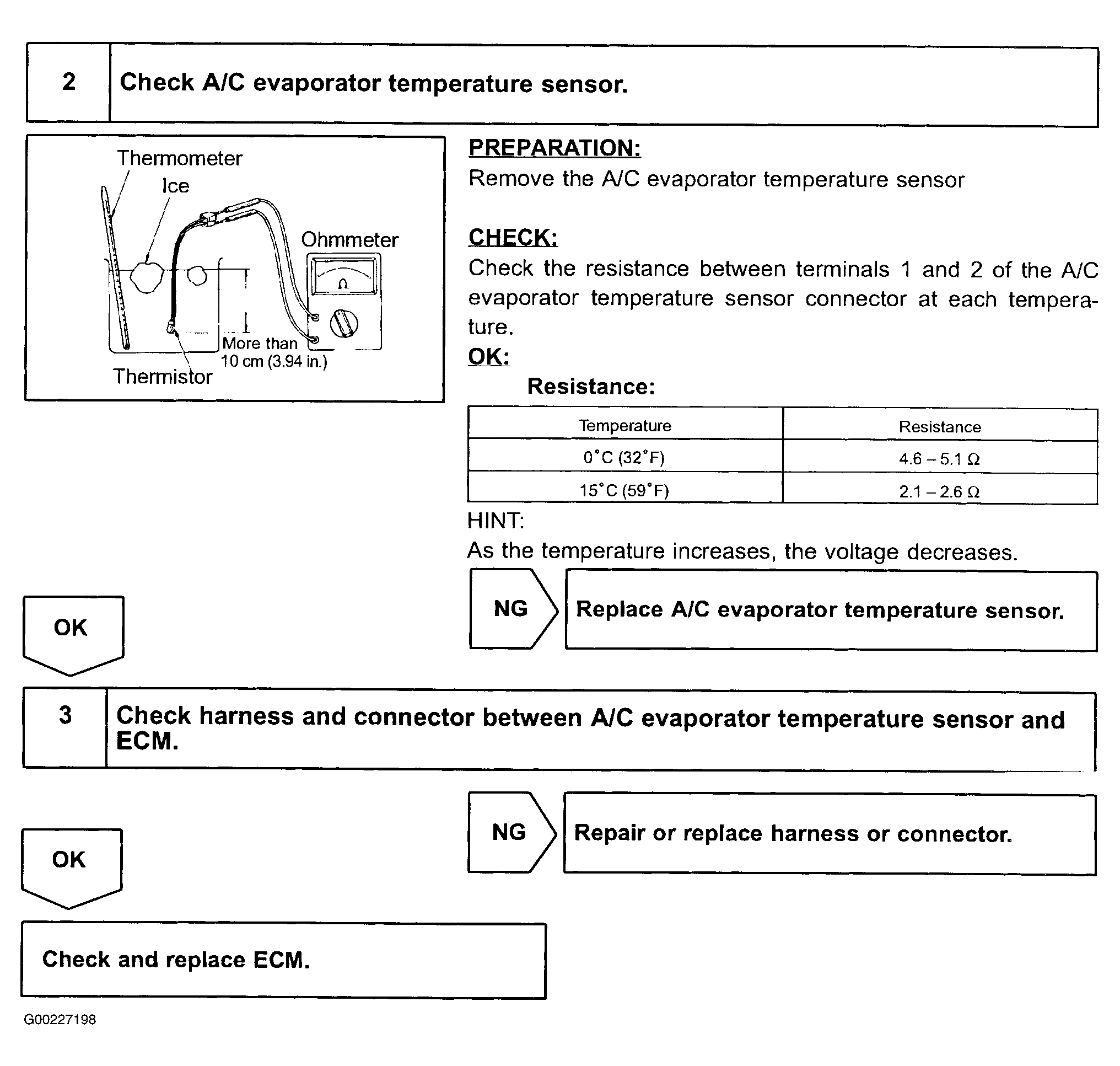 Fig 3: A/C Evaporator Temperature Sensor Circuit Inspection - Steps 2-3 (Camry Solara With Manual A/C)
