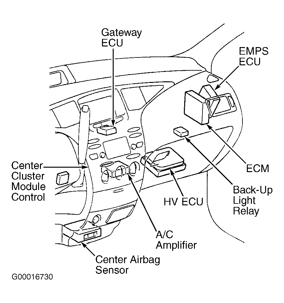 Fig 4: Locating Engine Control Module & A/C Amplifier (Prius)