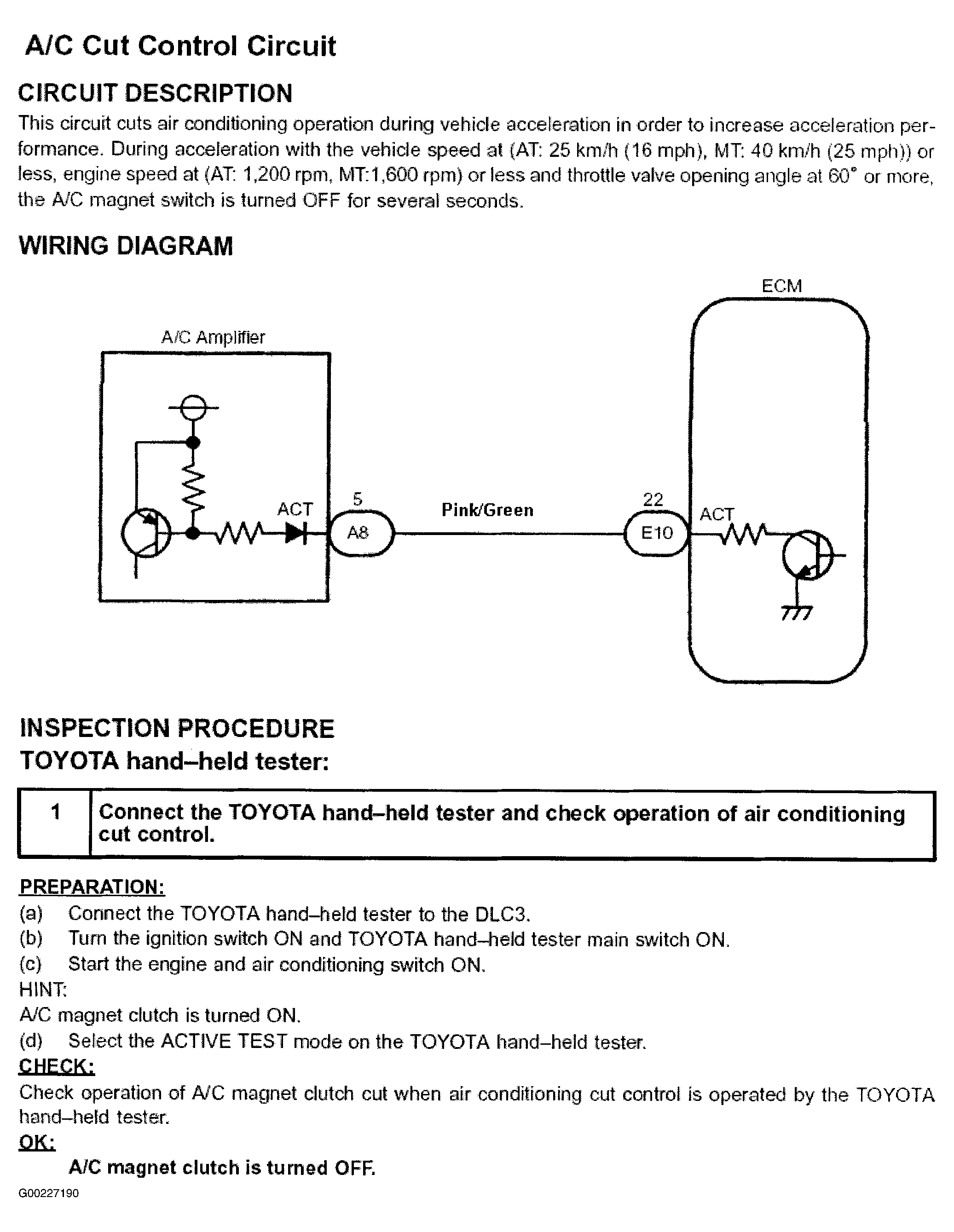 Fig 1: A/C Cut Control Circuit Description, Diagram & Circuit Inspection With Toyota Hand-Held Tester - Step 1 (Prius)