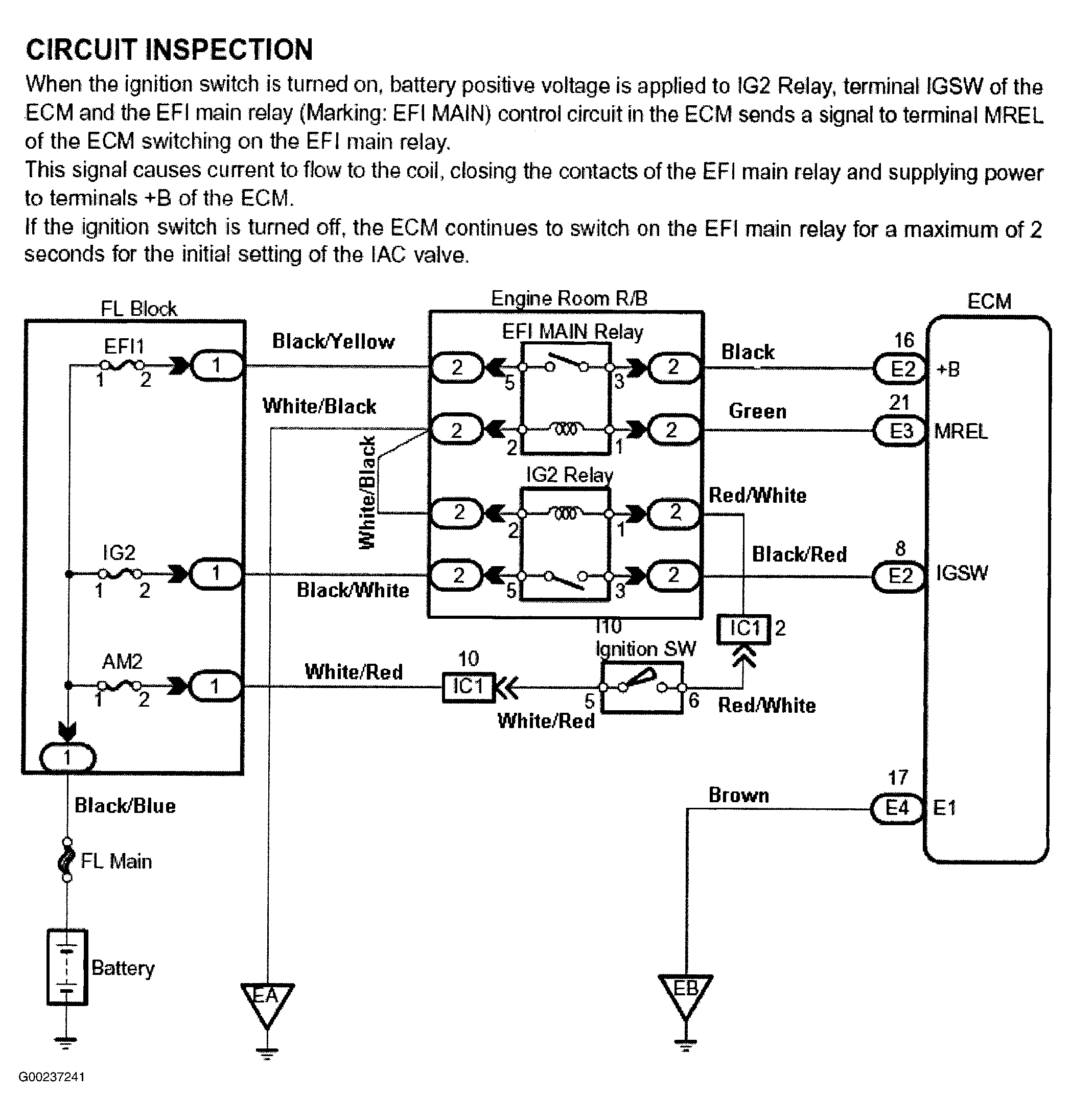 Fig 1: Engine Control Module Power Source Circuit Description & Diagram (MR2)