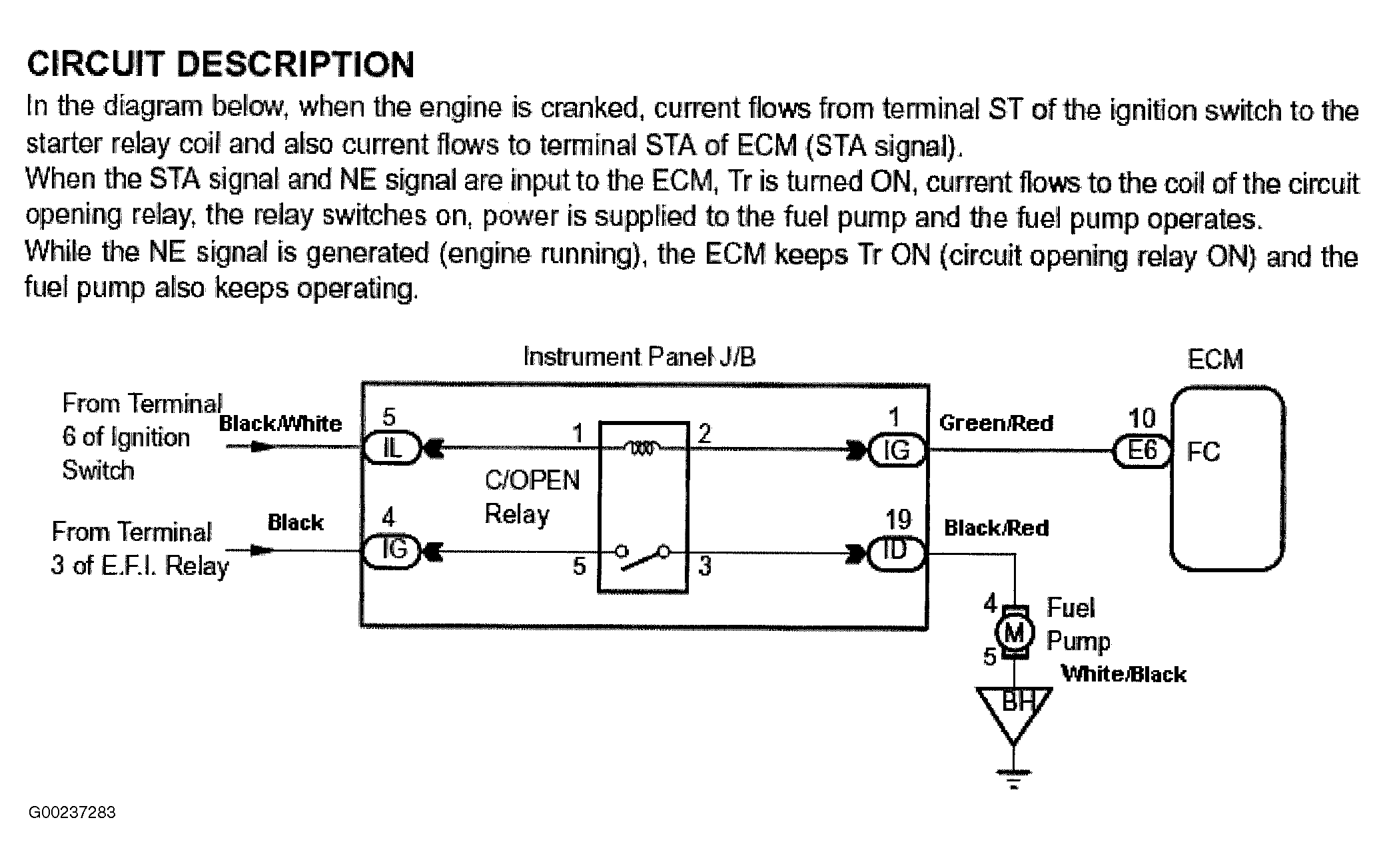 Fig 1: Fuel Pump Control Circuit Description & Diagram (Corolla)