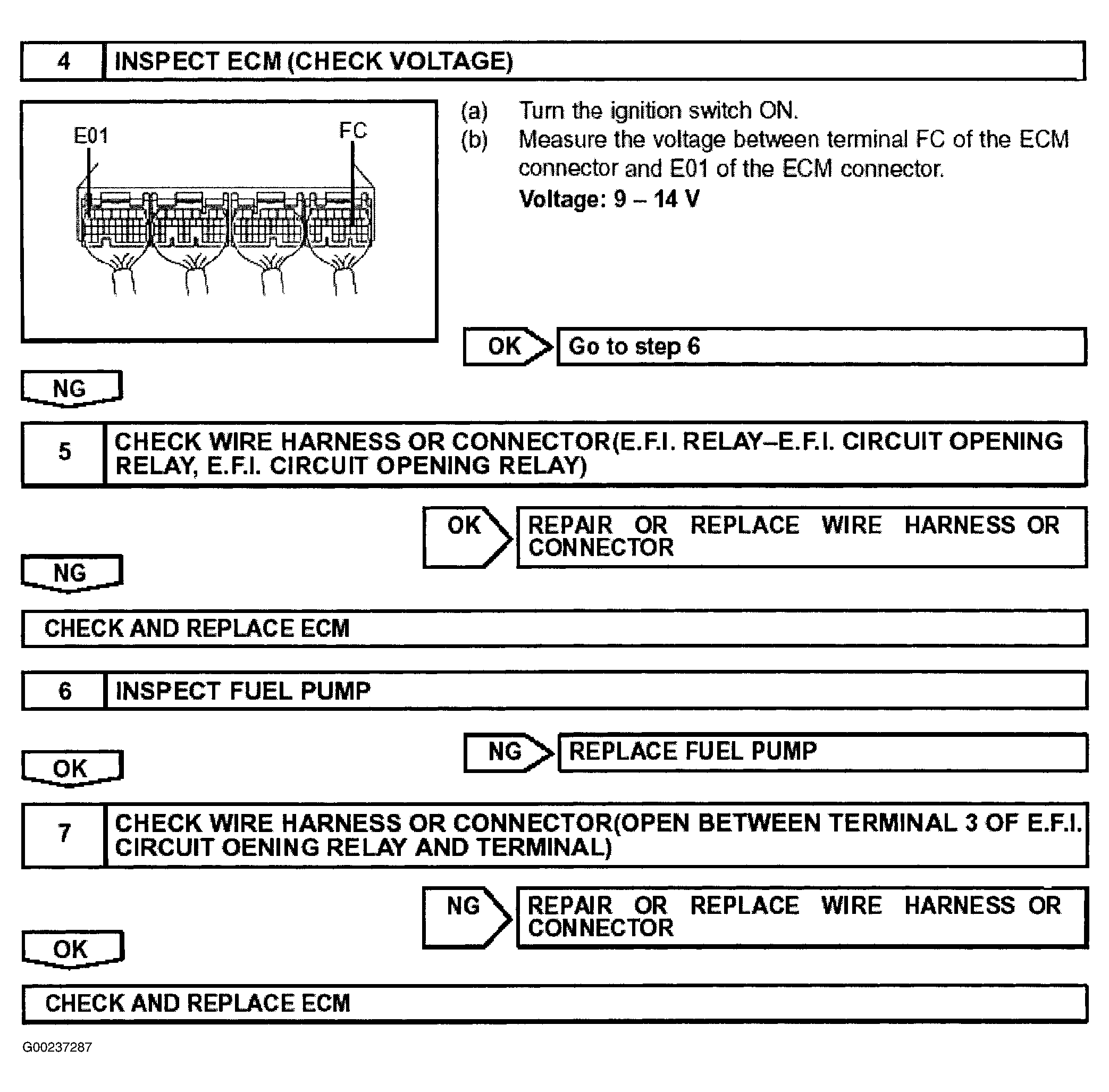 Fig 5: Fuel Pump Control Circuit Inspection Using OBD II Scan Tool - Steps 4-7 (Corolla)