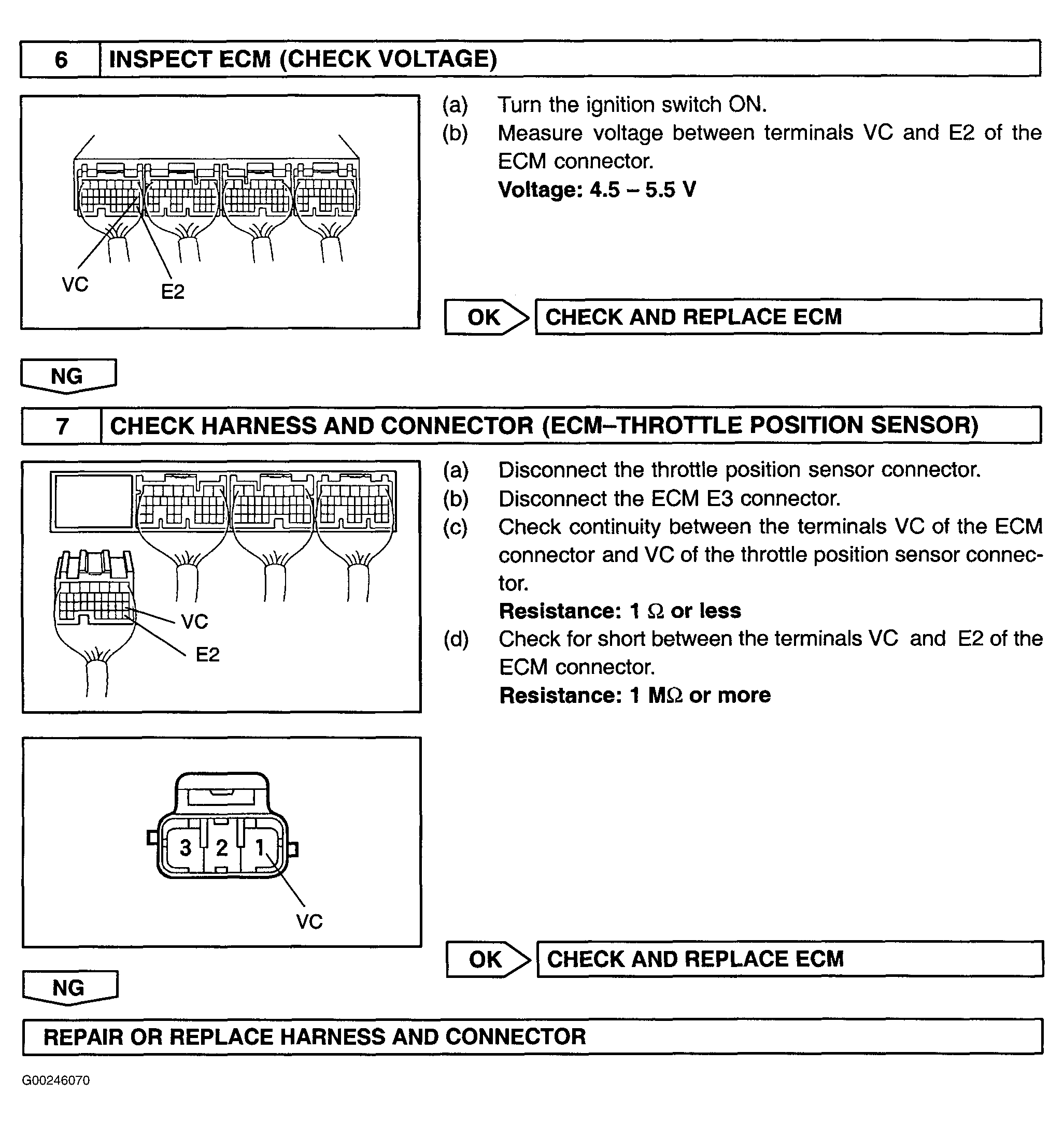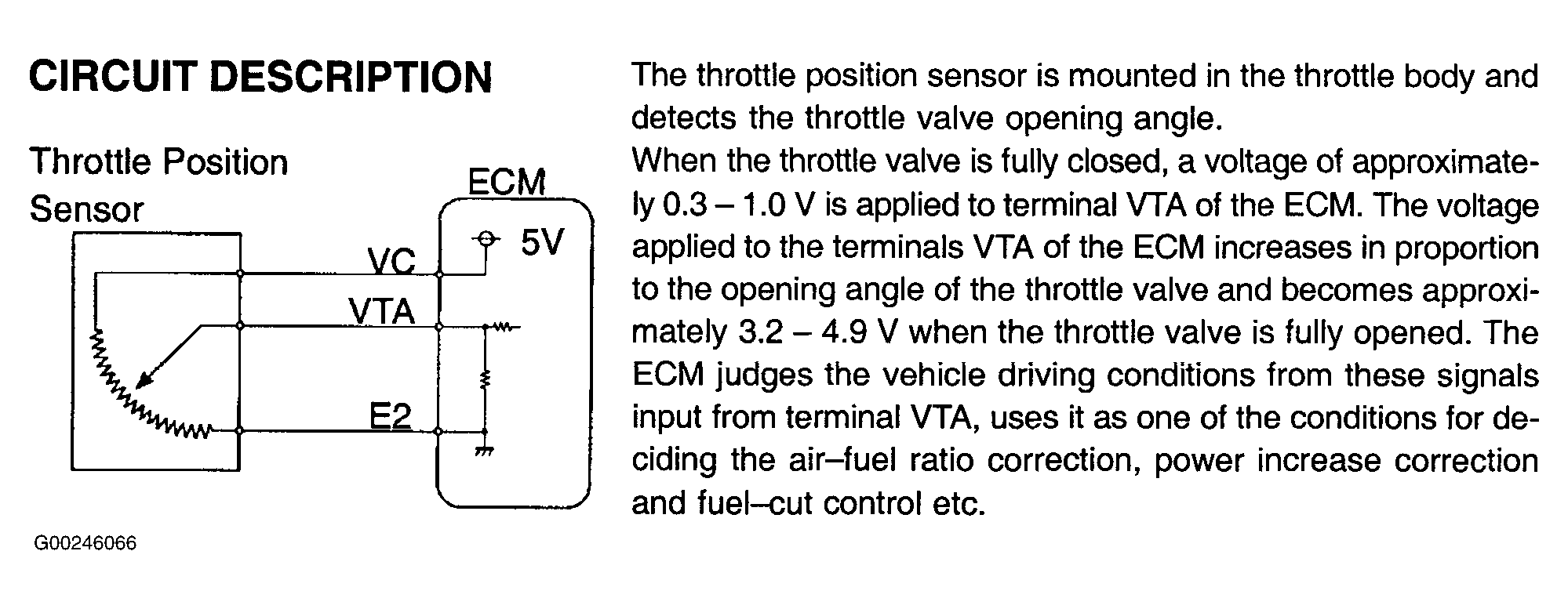For testing of throttle position sensor, see Fig 1-Fig 5 . To check for intermittent problems, see INTERMITTENTS in TROUBLE SHOOTING - NO CODES article. Before replacing ECM, check ECM connectors and ground circuits. See ENGINE CONTROL MODULE POWER & GROUND CIRCUITS under COMPUTERIZED ENGINE CONTROLS.