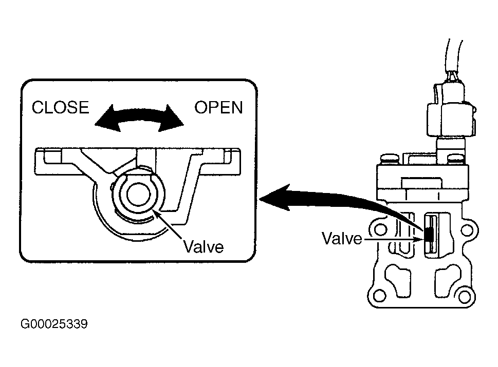 5. Turn ignition on. Check that valve on inside of IAC valve moves from half open to fully closed, fully open and then returns to half open within.5 second. See Figure. Turn ignition off.