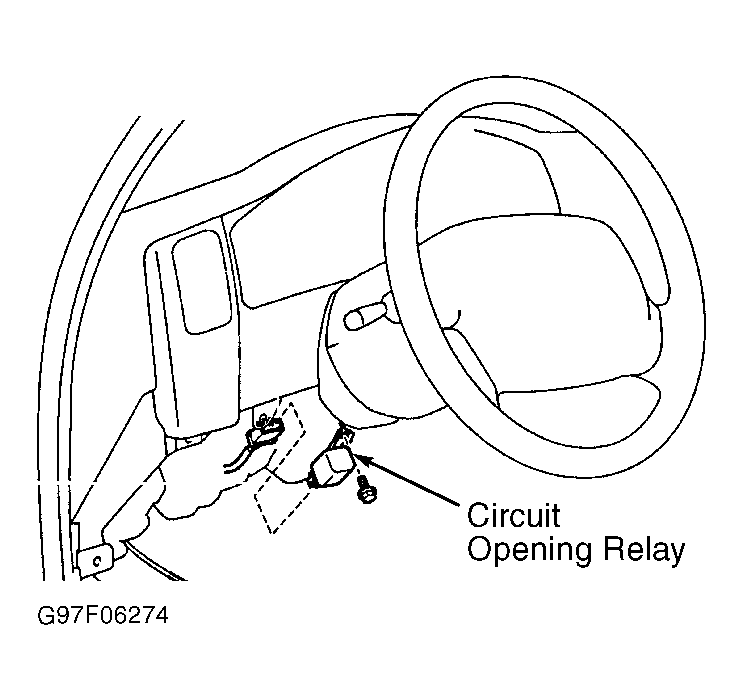 1. Ensure ignition is off. Remove circuit opening relay. See CIRCUIT OPENING RELAY LOCATION  table and Fig 1-Fig 10 .