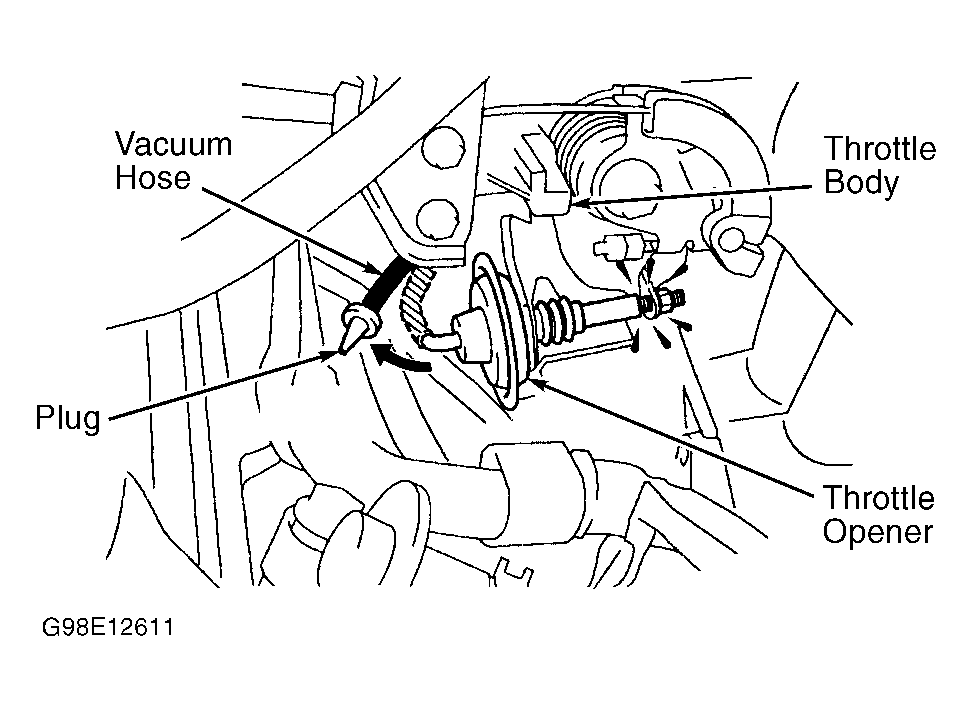 under FUEL SYSTEMS in REMOVAL & INSTALLATION - 4-CYLINDER article. Shut engine off. Reinstall vacuum hose on throttle opener. Start engine and ensure engine returns to proper idle speed.