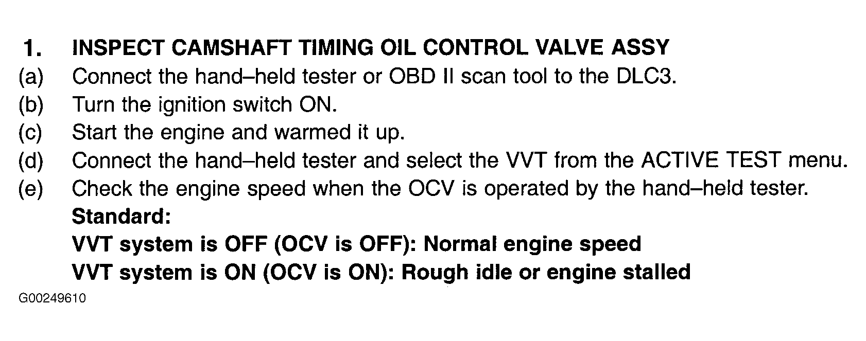 For testing of Variable Valve Lift (VVL) oil control valve, see