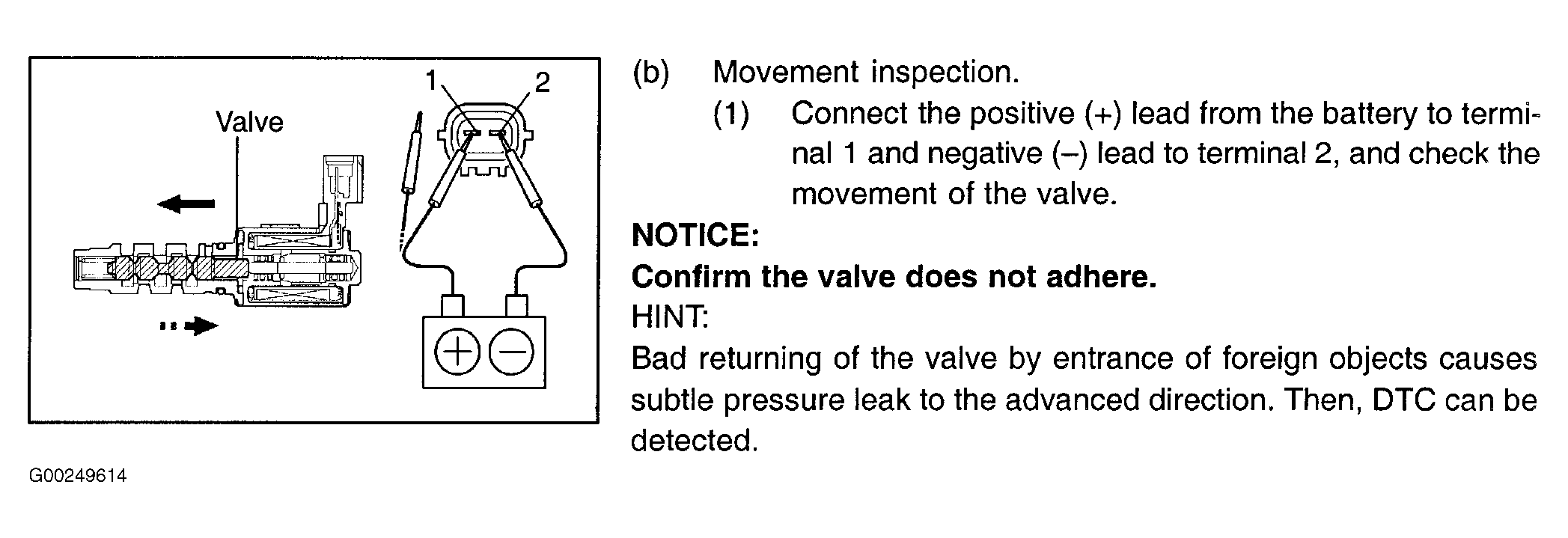 For testing of Variable Valve Lift (VVL) oil control valve, see Fig 1.