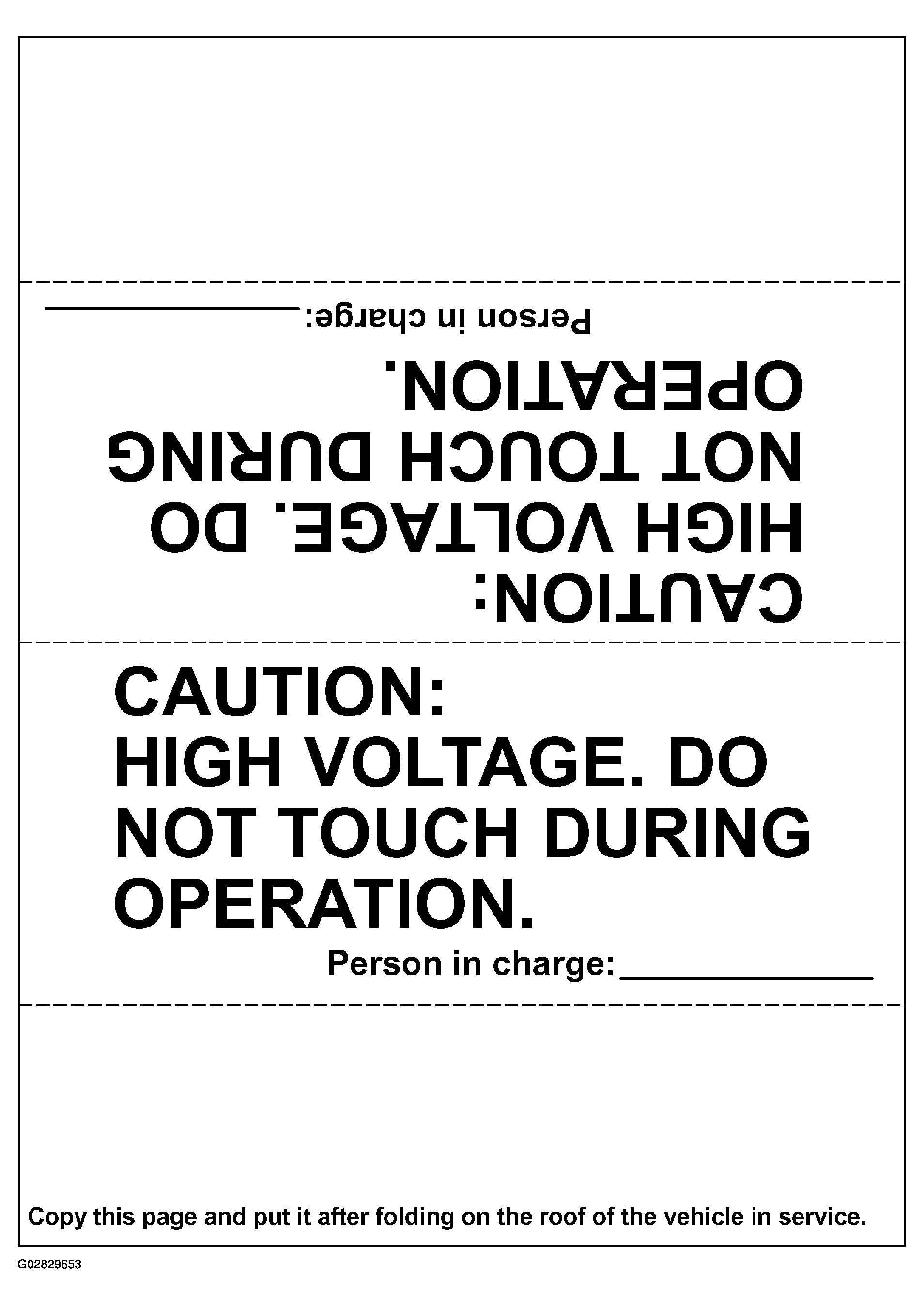- Call other engineers' attention to the vehicle which high-voltage system is being inspected or repaired by hanging a "High Voltage Operation in Progress. Do Not Touch" sign (See Fig 3).