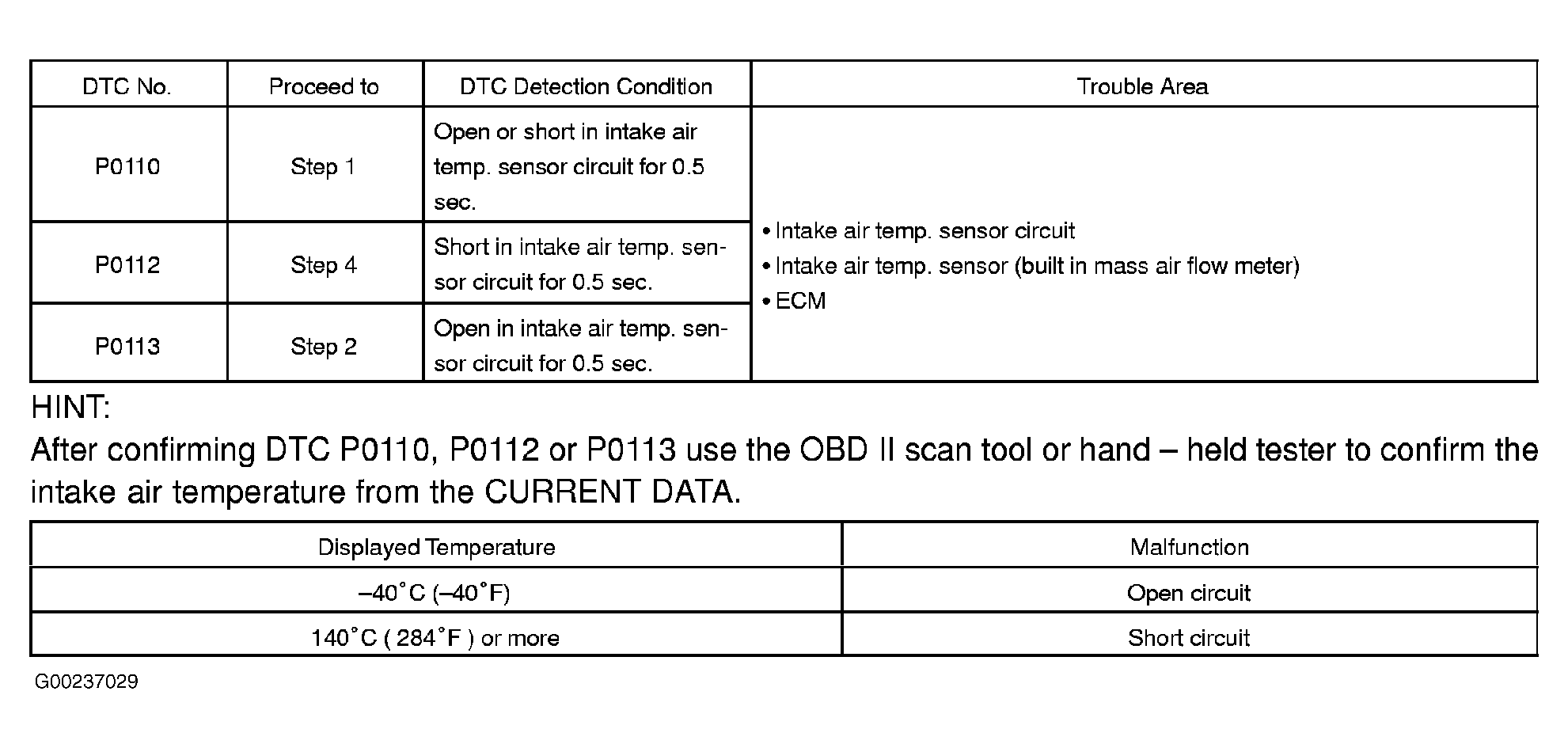 Home >> Toyota >> 2004 >> Matrix Base, 4WD >> Repair and Diagnosis >> External Pages >> Different car >> Section 129 (Engine Control System Self Diagnostics) >> Diagnostic Tests >> DTC P0110, DTC P0112 Or DTC P0113 >> Possible Causes