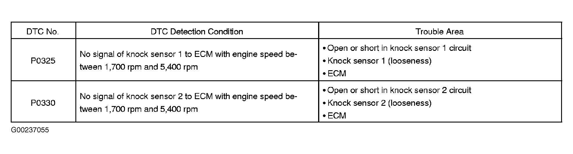 Home >> Toyota >> 2004 >> Matrix Base, 4WD >> Repair and Diagnosis >> External Pages >> Different car >> Section 129 (Engine Control System Self Diagnostics) >> Diagnostic Tests >> DTC P0325: Knock Sensor No. 1 Circuit Or DTC P0330: Knock Sensor No. 2 Circuit >> Possible Causes