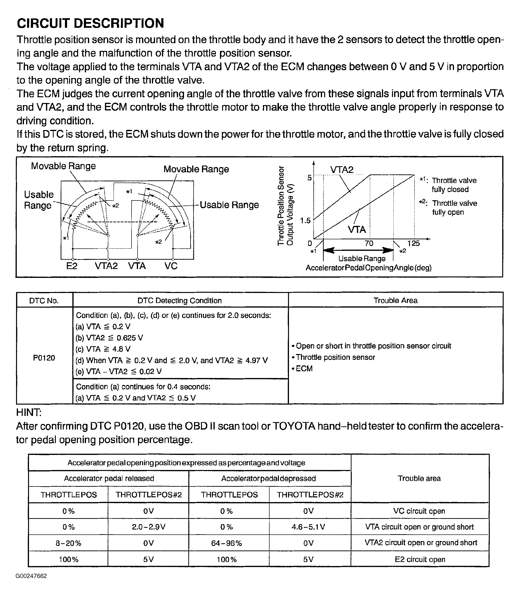 Home >> Toyota >> 2004 >> Matrix Base, 4WD >> Repair and Diagnosis >> External Pages >> Different car >> Section 130 (Engine Control System Self Diagnostics) >> Diagnostic Tests >> DTC P0120: Throttle/Pedal Position Sensor/Switch "A" Circuit (Sequential M/T) >> Circuit Description & Possible Causes