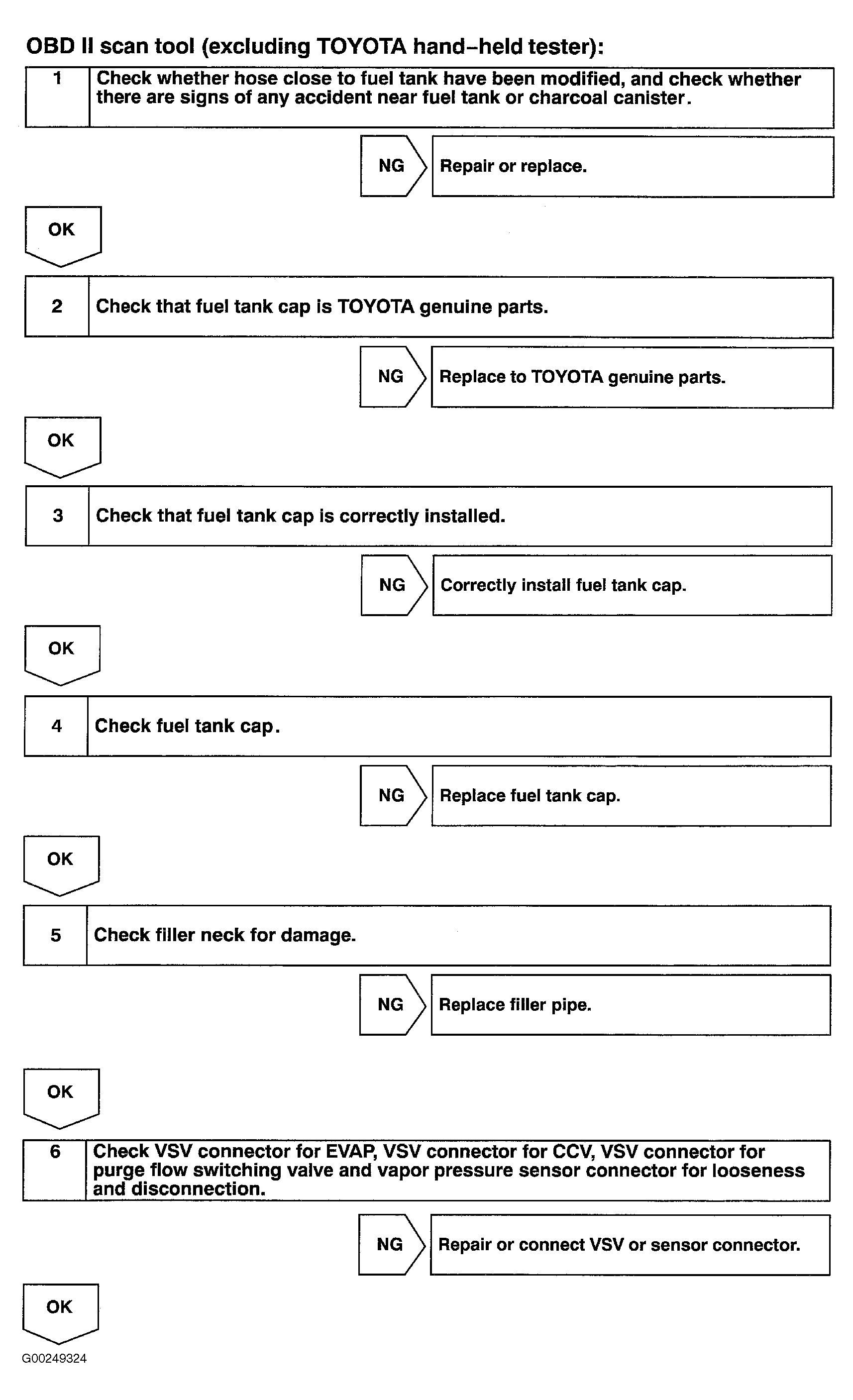 For diagnosis and repair procedure with Toyota Hand-held tester or an Enhanced OBD II scan tool, see Fig 1-Fig 7 .