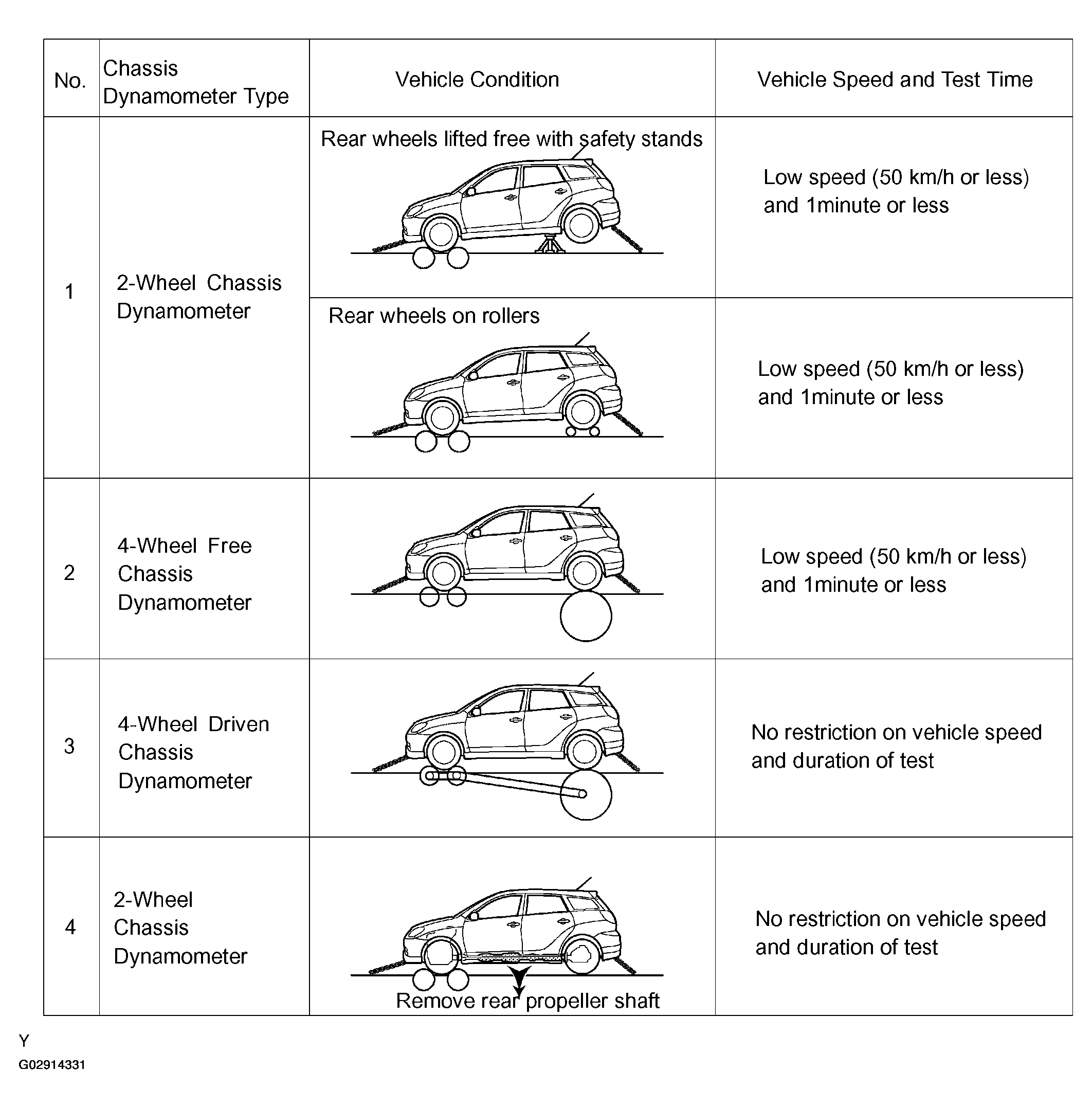 - BEFORE BEGINNING TESTNOTE: Tester with a function of 2-wheel load setting (2-wheel power absorption type) cannot be used; such as a 2-wheel chassis dynamometer, and a combined tool of a 2-wheel chassis dynamometer, a speedometer tester and a brake tester.