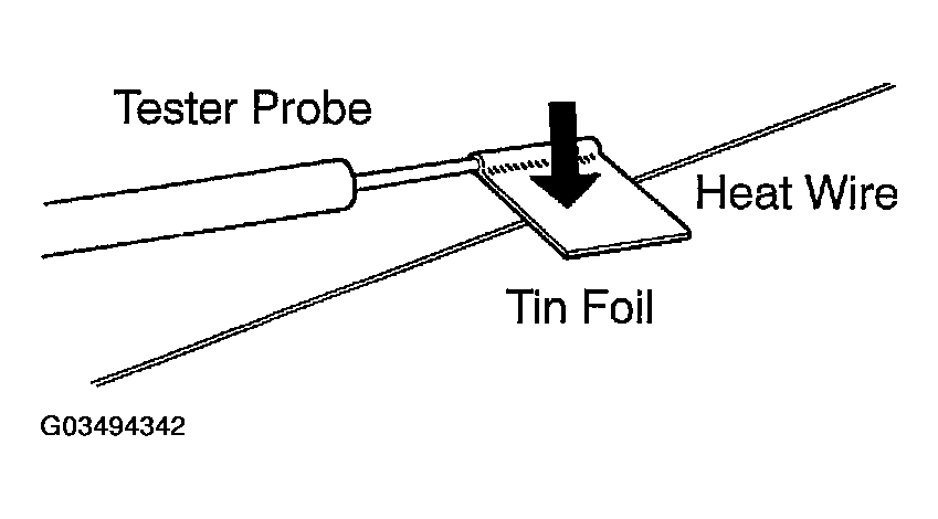 - Place the voltmeter positive (+) lead against the defogger wire on the battery side.
