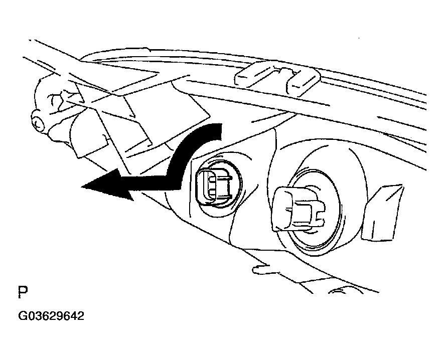 2. Pull the headlamp assy towards the front of the vehicle, disconnect all connectors and remove the headlamp assy.