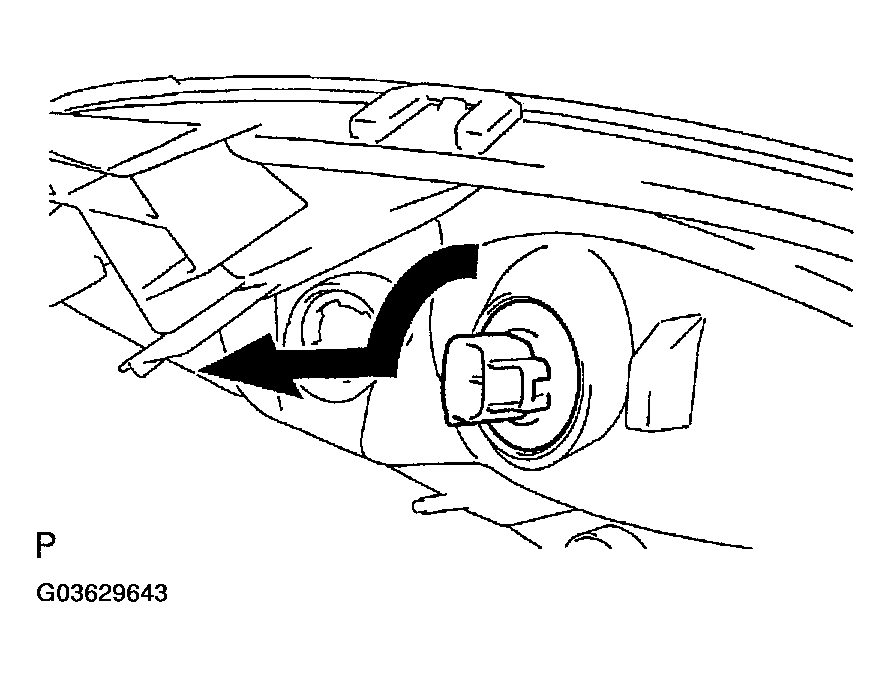 2. Push the set spring in the direction indicated by the arrow in the illustration to remove the headlamp No.1 bulb.