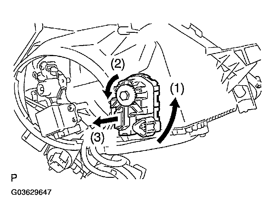 1. Rotate the headlamp leveling motor in the direction indicated by arrow (1) in Fig 12 to remove it.