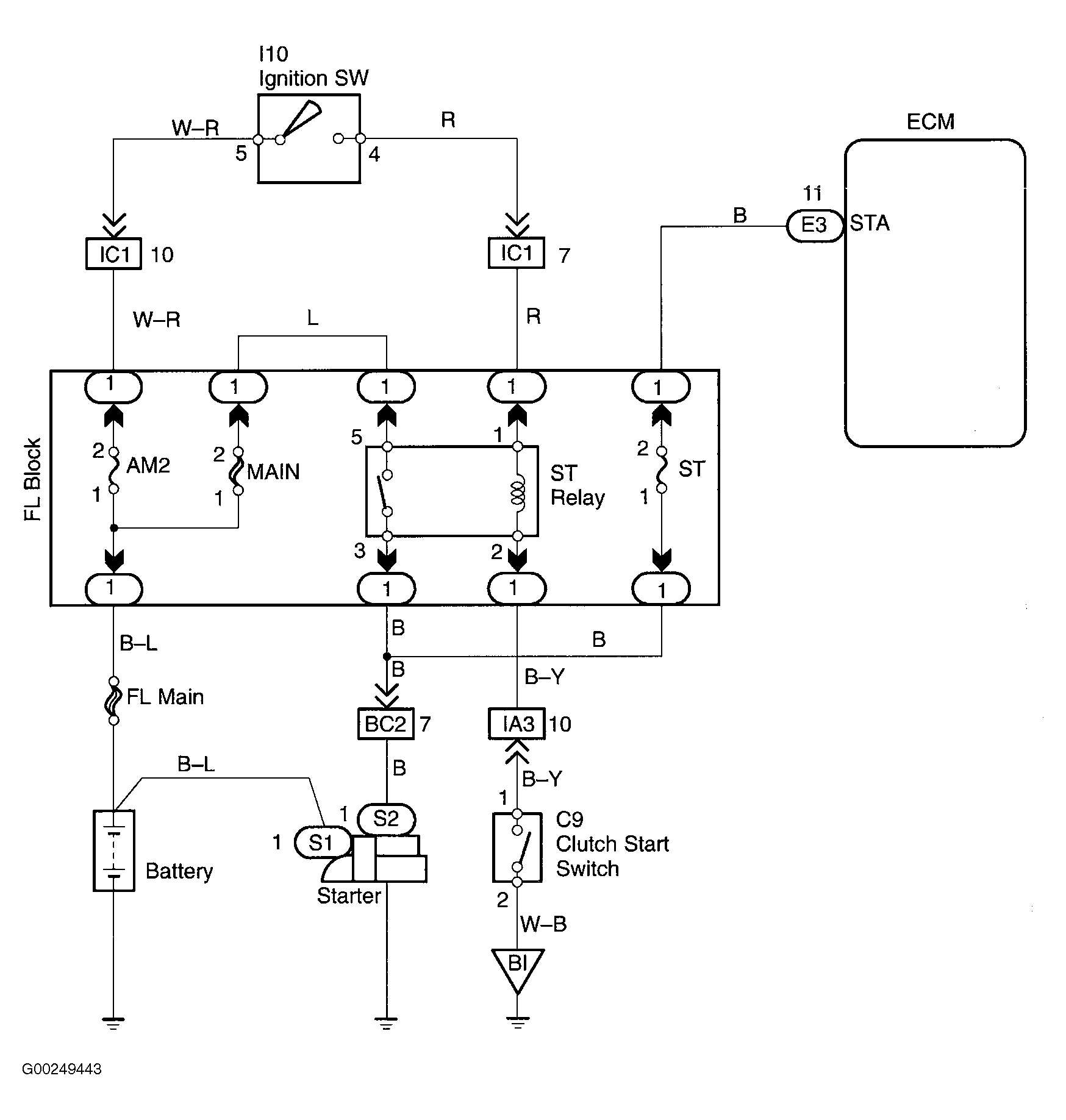 For starter relay circuit wiring diagram, see Fig 1. For location of emission related components, see Figure.