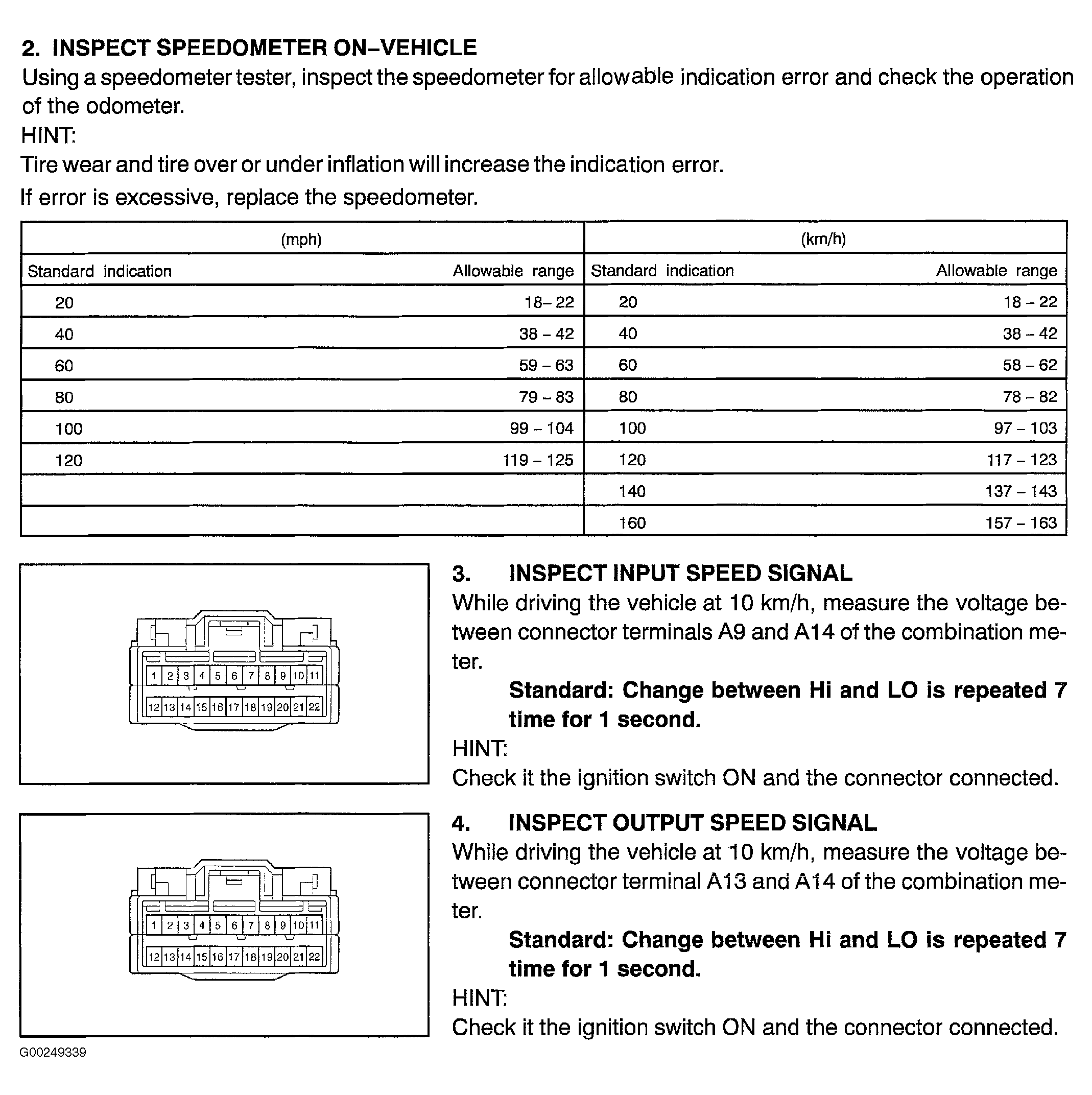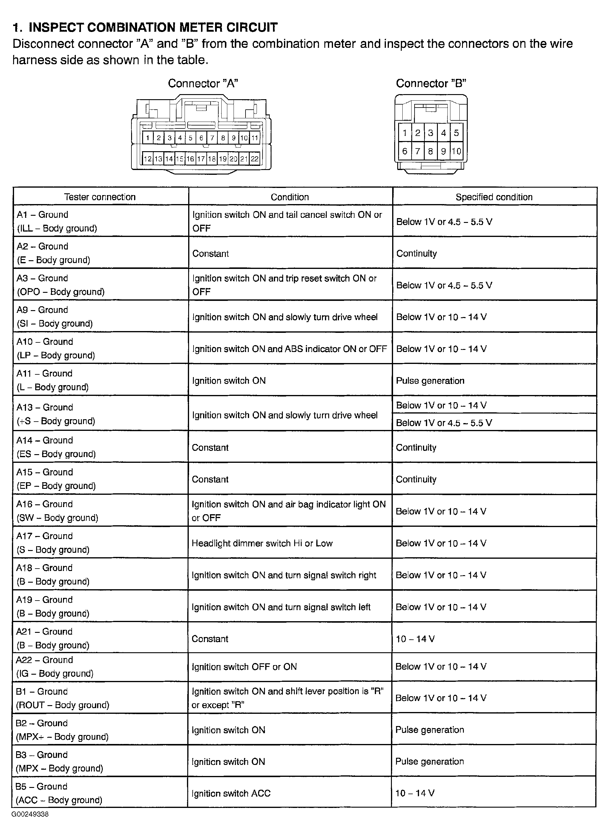 Combination meter is located top center of dashboard. To inspect combination meter circuit and speedometer (on-vehicle), see Fig 1 & Fig 2