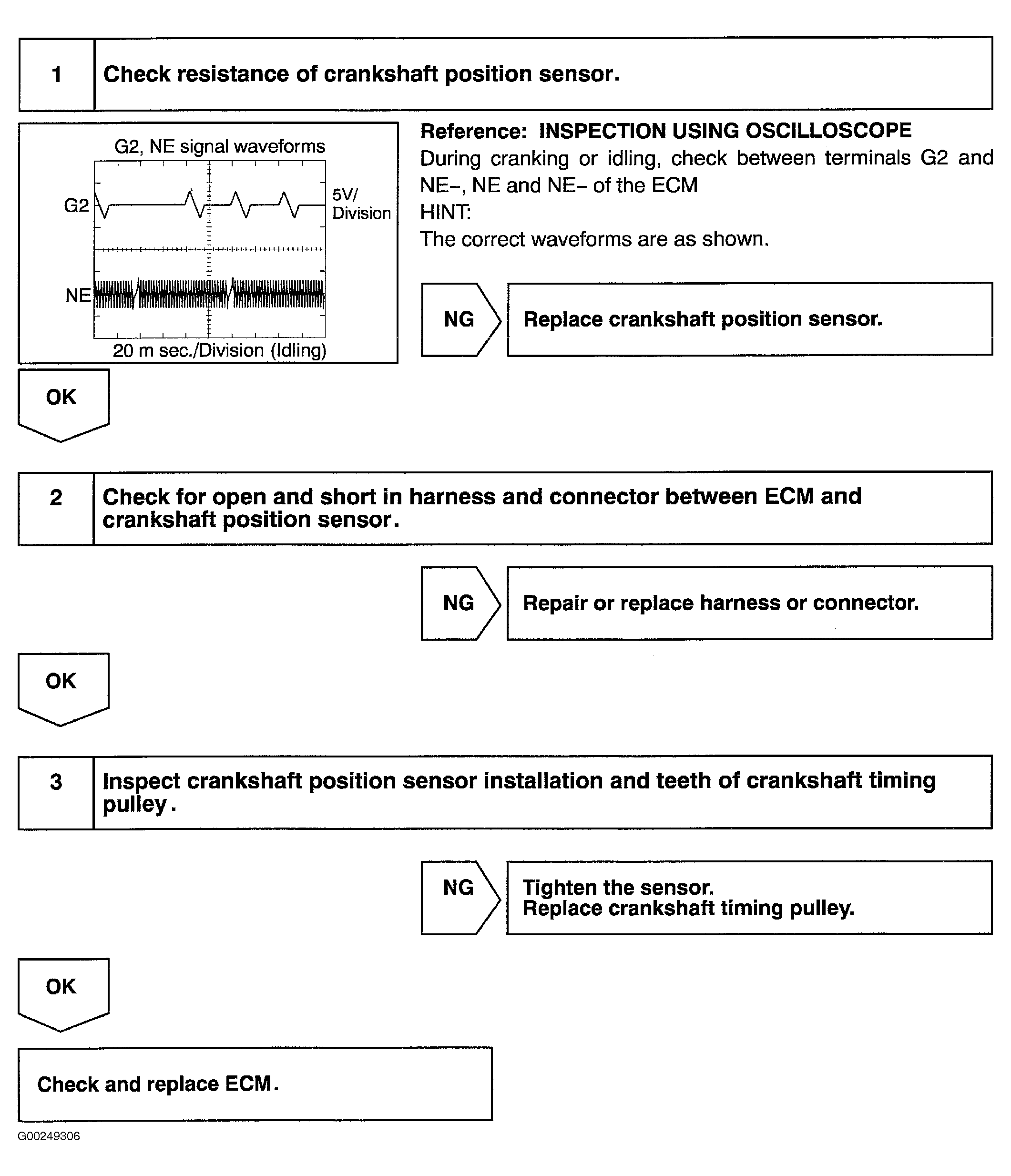 Home >> Toyota >> 2004 >> Matrix Base, FWD, Automatic >> Repair and Diagnosis >> External Pages >> Different car >> Section 131 (Engine Control System Self Diagnostics) >> Diagnostic Tests >> DTC P0335: Crankshaft Position Sensor Circuit >> Diagnosis & Repair