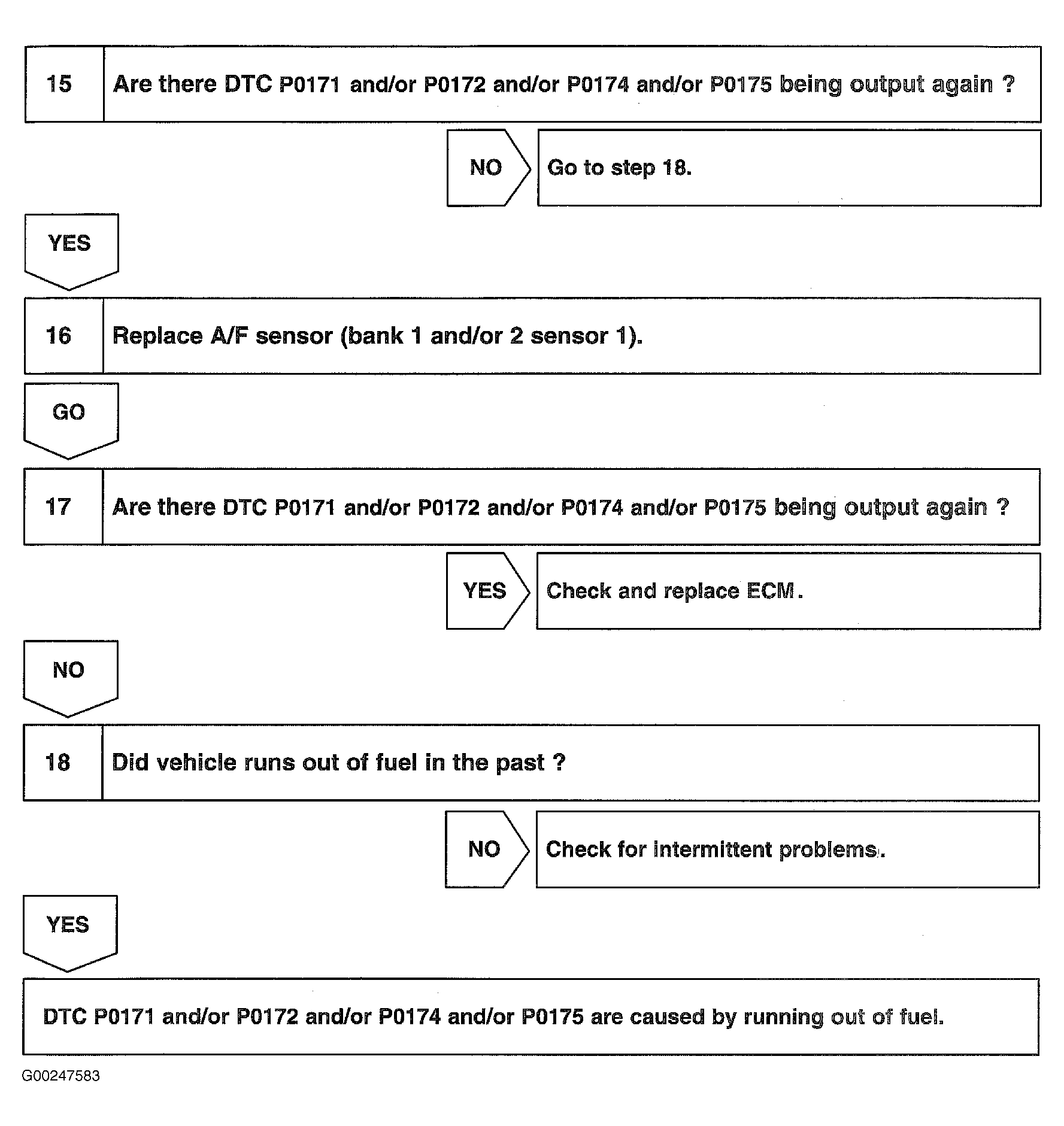 Fig 6: DTCs P0171, P0172, P0174 & P0175 Diagnostic Procedure (Steps 15-18)