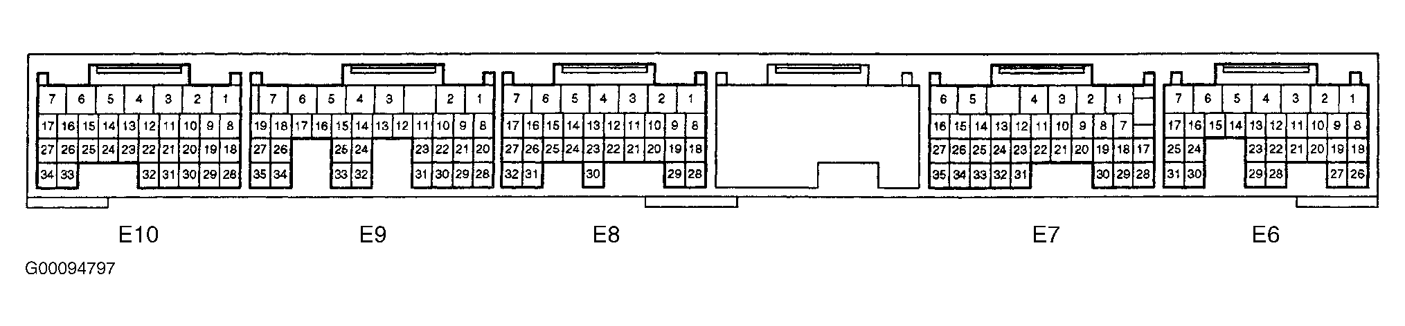 7. On all models, remove glove box for access to Engine Control Module (ECM). For illustration of ECM location, see ENGINE CONTROL MODULE  under COMPONENT LOCATIONS. Note ECM electrical connector terminal identification. See Figure. Turn ignition on. Using voltmeter, check voltage between terminals No. 25 (on models produced before January 2003), or No. 33 (on models produced after January 2003), and No. 28 at ECM electrical connector E10. These are the AICV and E2 terminals at ECM.
