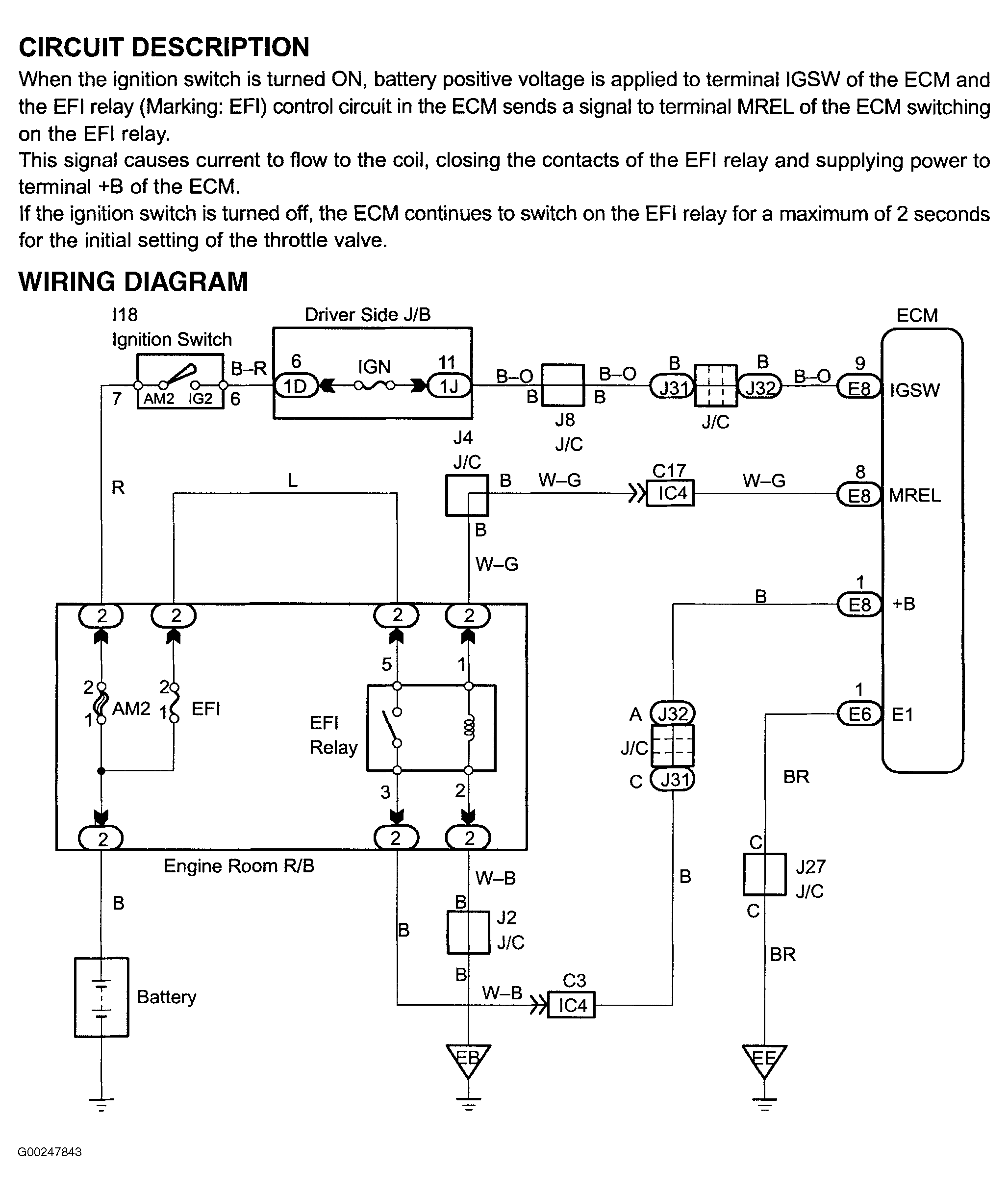 Fig 2: Engine Control Module Power Source Circuit Description & Wiring Diagram (4Runner 4.7L)