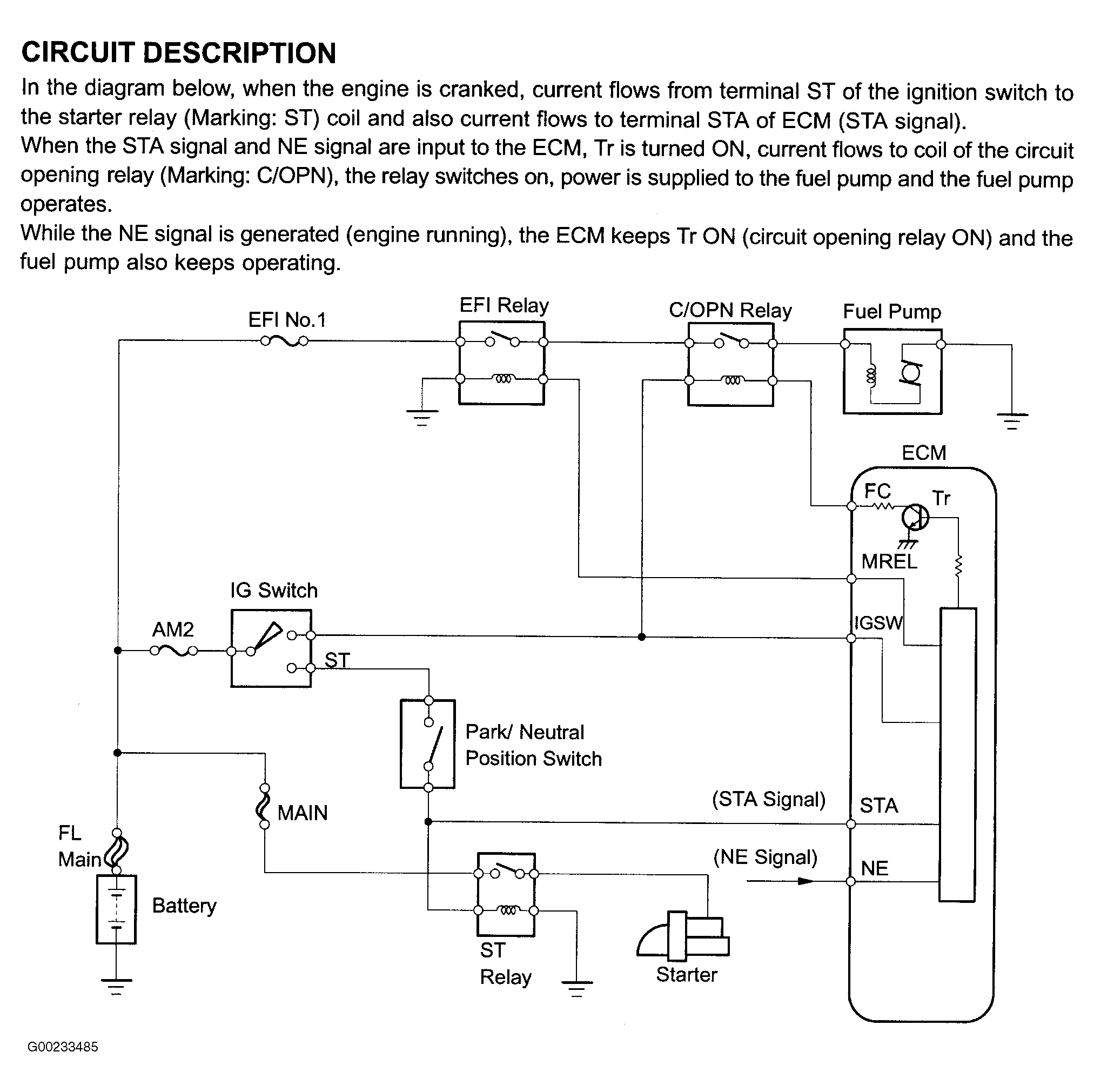 Fig 1: Fuel Pump Control Circuit Description & Diagram (Avalon)