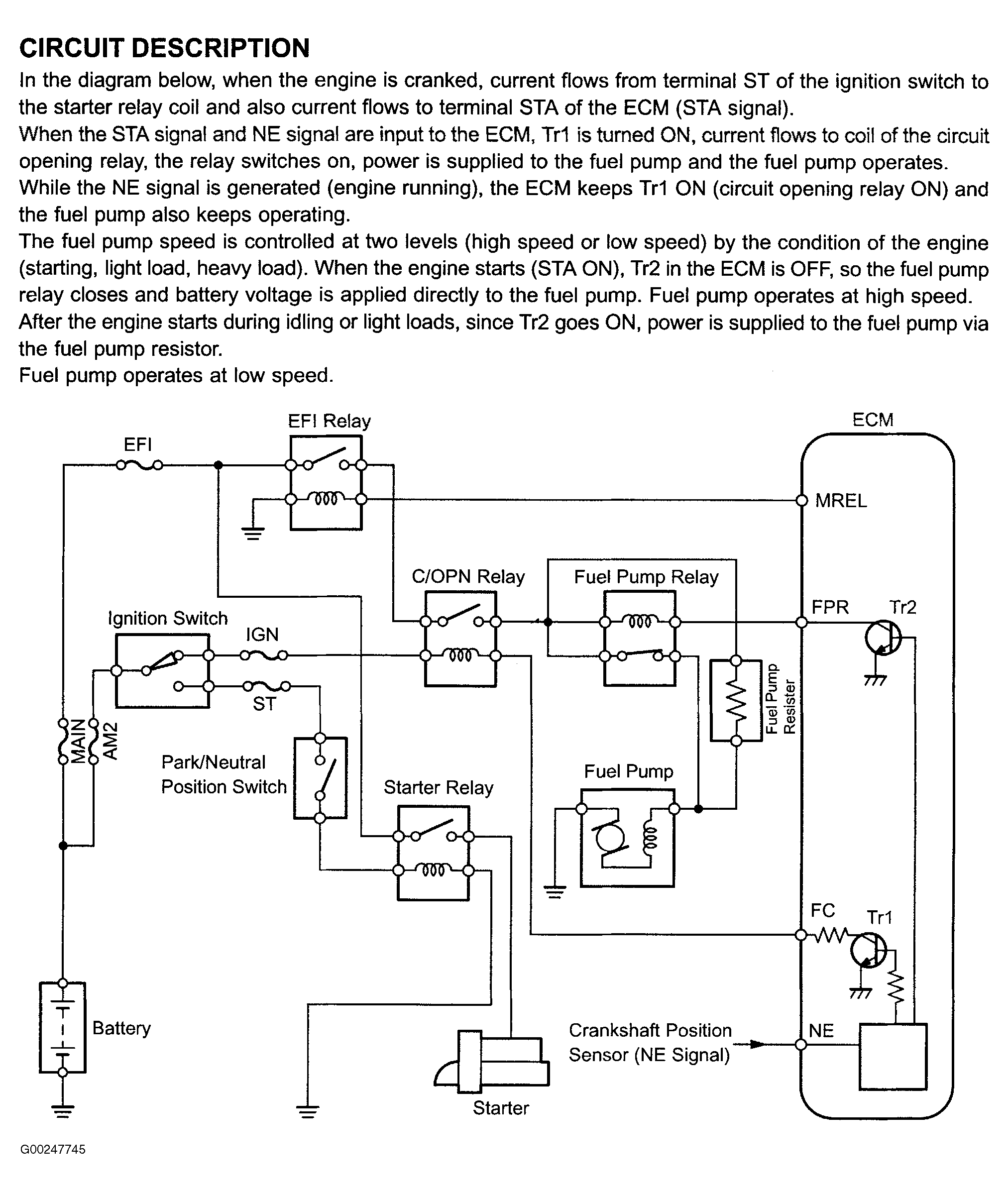 Fig 1: Fuel Pump Control Circuit Description & Diagram (Land Cruiser)