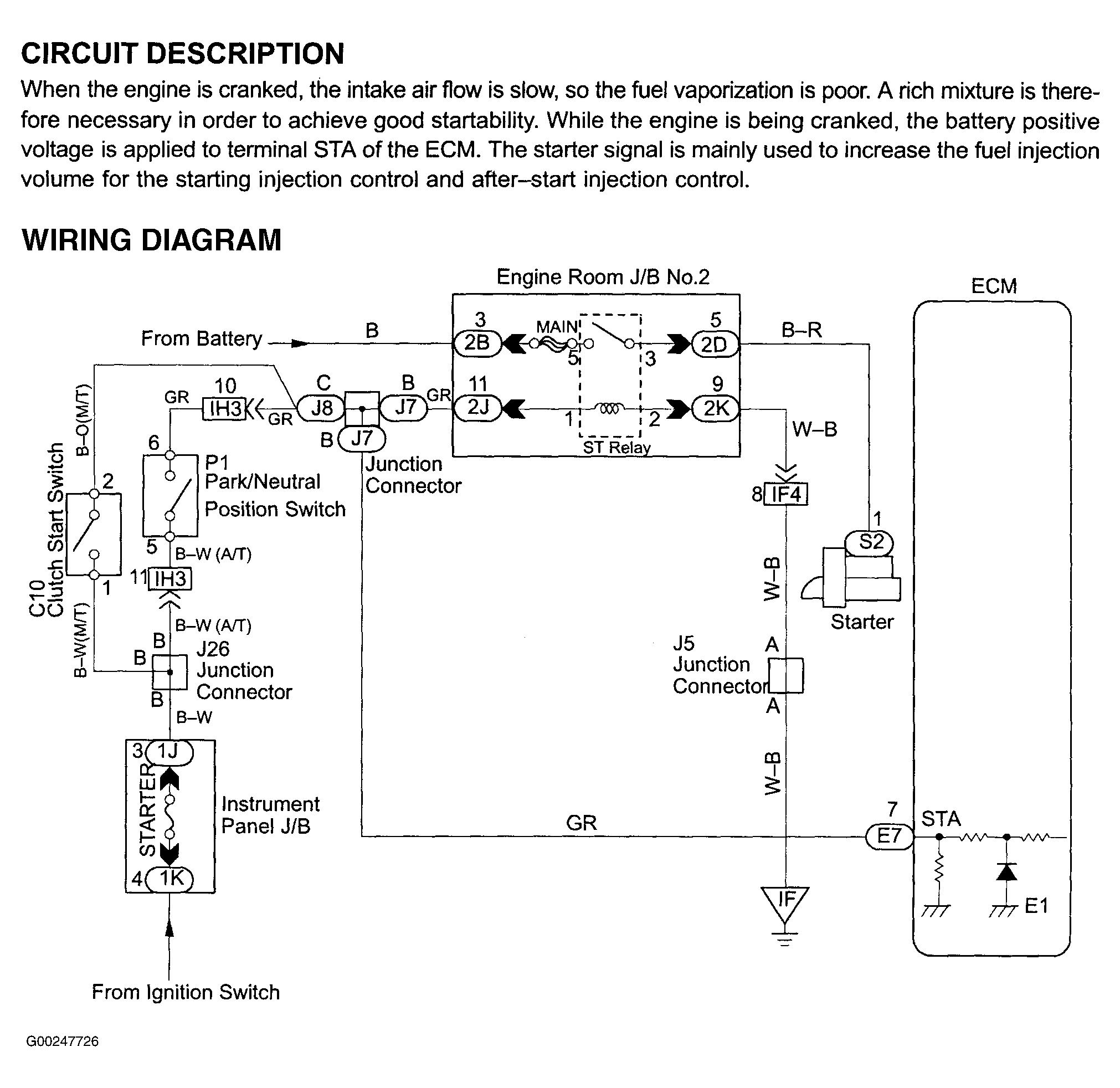 For starter signal circuit inspection and wiring diagram, see Fig 1-Fig 4 . For circuit identification, see ENGINE PERFORMANCE in appropriate SYSTEM WIRING DIAGRAMS article in ELECTRICAL. Before replacing ECM, check ECM connectors and ground circuits. See ENGINE CONTROL MODULE POWER & GROUND CIRCUITS under COMPUTERIZED ENGINE CONTROLS.