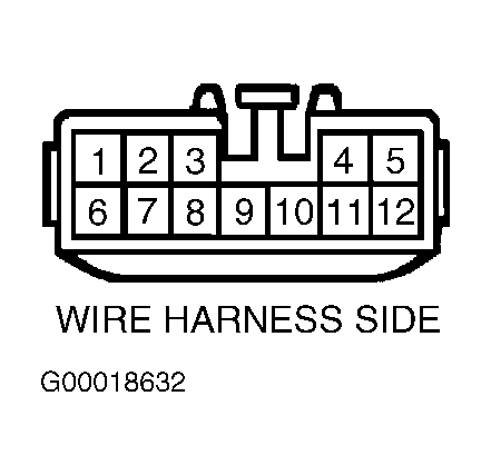 Turn ignition off. Disconnect 12-pin electrical harness connector from light failure sensor. Light failure sensor is located in left rear corner of luggage compartment. Using a DVOM, check continuity between specified terminals of 12-pin light failure sensor electrical harness connector. See Fig 1. See LIGHT FAILURE SENSOR CIRCUIT SPECIFICATIONS table. If circuits are not as specified, check wiring harness connections at other components. If circuits are as specified, replace light failure sensor. See LIGHT FAILURE SENSOR under REMOVAL & INSTALLATION.