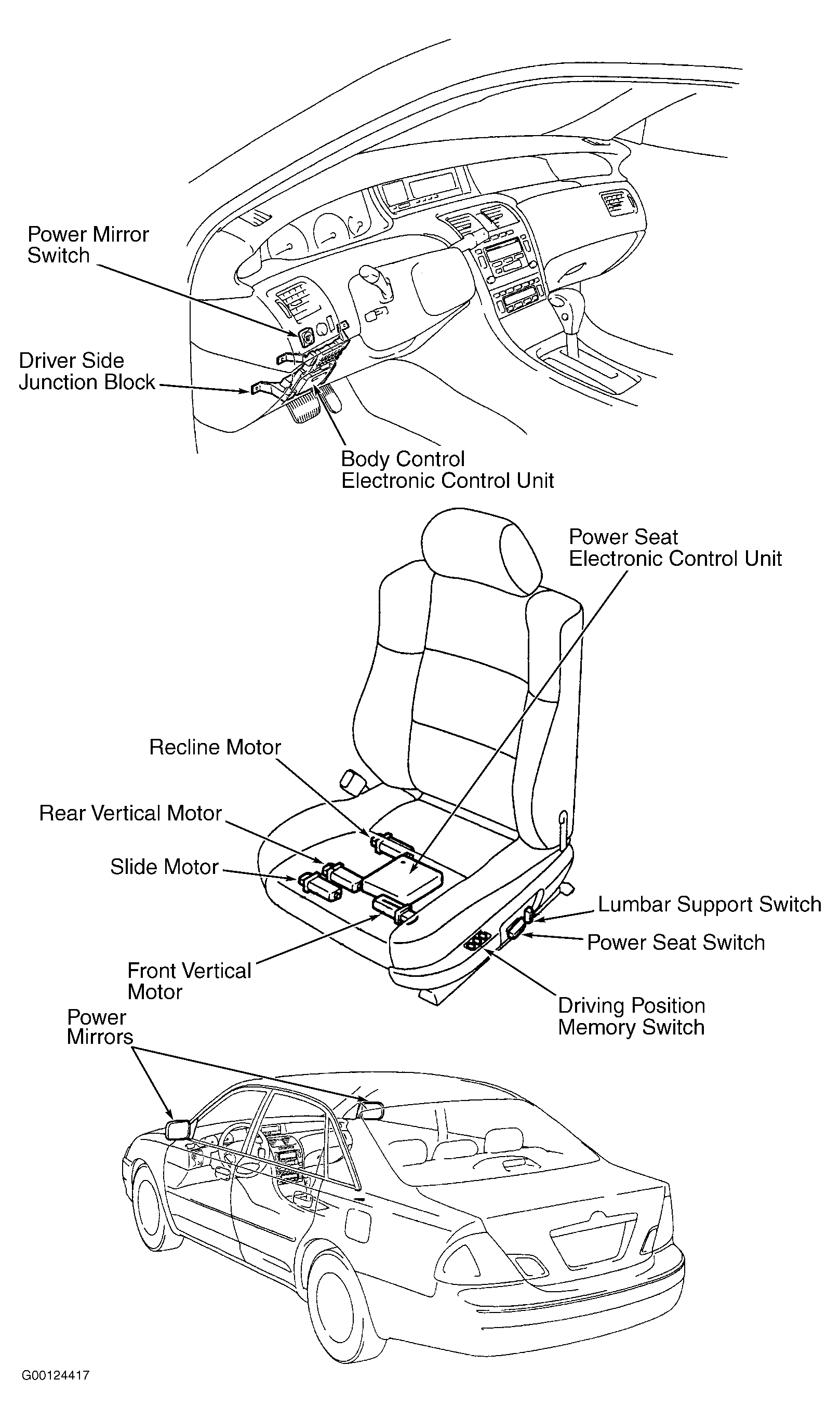 NOTE: For power mirror component locations, see illustration. See Fig 1.