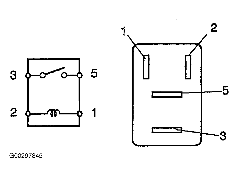 2. Check relay operation by applying battery voltage through terminals No. 1 and 2. See Fig 1. Measure resistance between terminals No. 3 and 5. Ensure resistance is within specification. See STARTER RELAY CONDITIONS  table. If relay does not test as indicated, replace relay. If as specified, install relay.