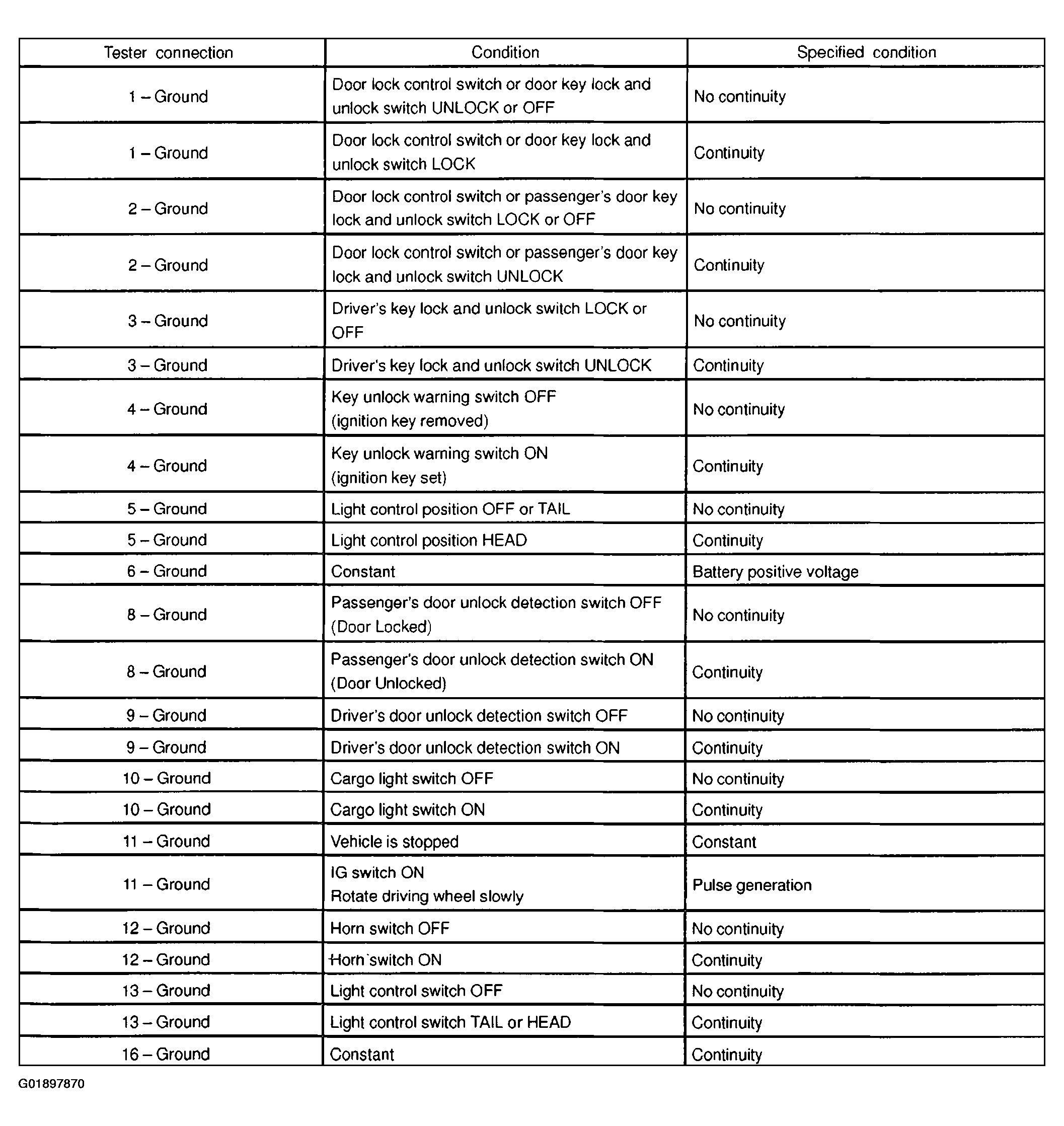 Home >> Toyota >> 2004 >> Matrix Base, FWD, Automatic >> Repair and Diagnosis >> External Pages >> Different car >> Section 424 (Power Door Lock Control System) >> Power Door Lock Control System >> Inspection >> Step 7 - Inspect Integration Relay Circuit