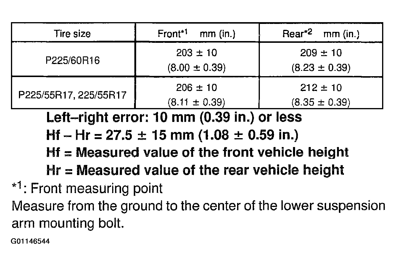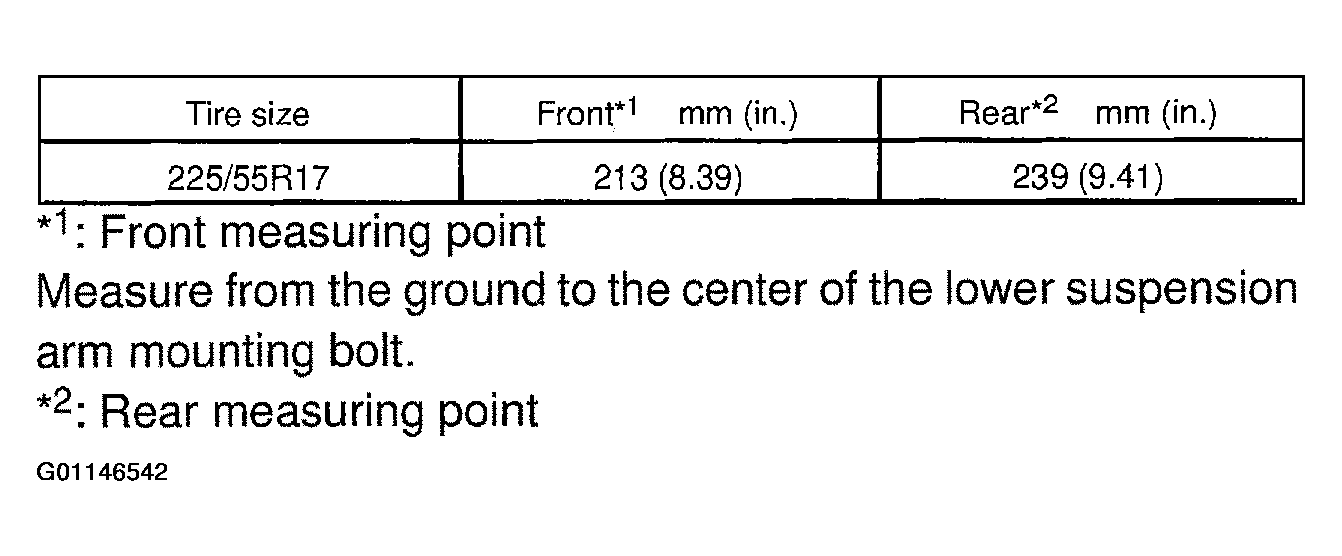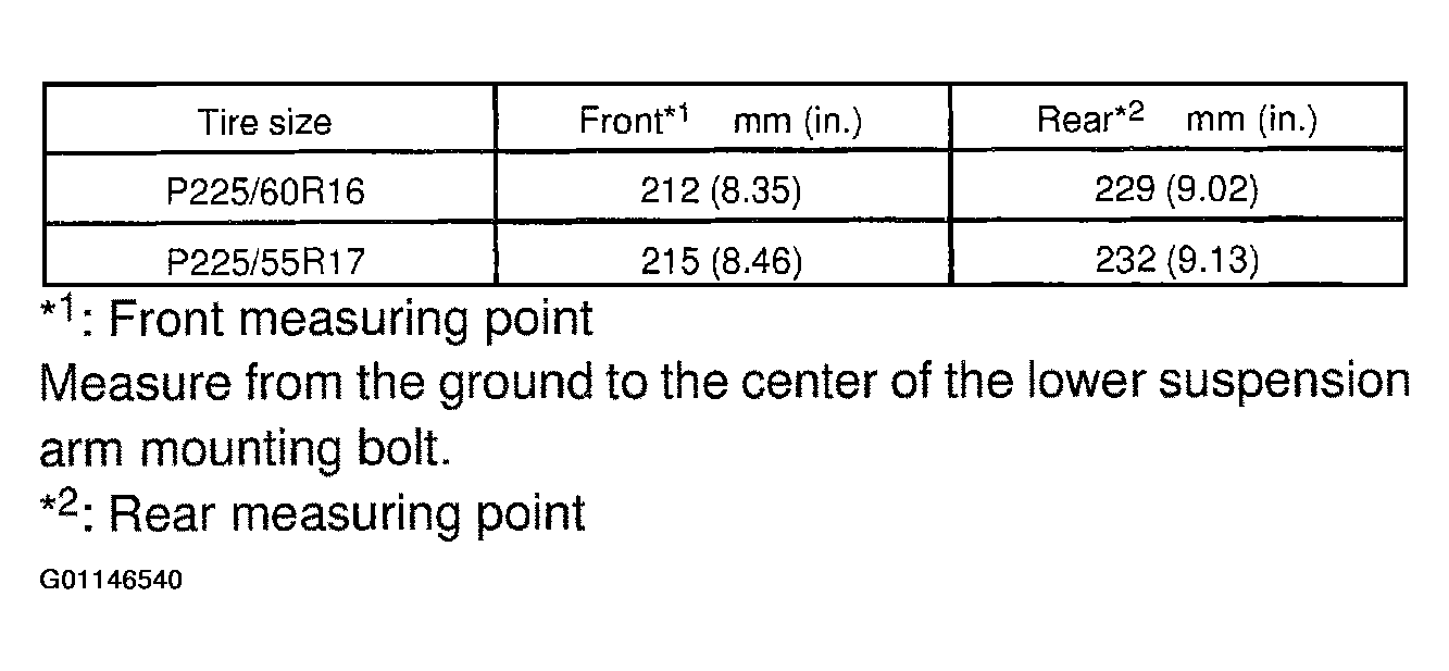 When the radius of a wheel is 315 mm (12.40 in.) or 318 mm (12.52 in.) vehicle height will be the value described in Fig 1.