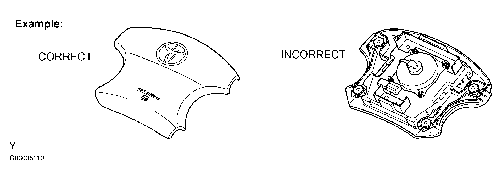 - Always place a removed or new front seat airbag assembly with the airbag inflation direction facing up. Placing the airbag assembly with the airbag inflation direction facing downward could cause a serious accident if the airbag deploys.
