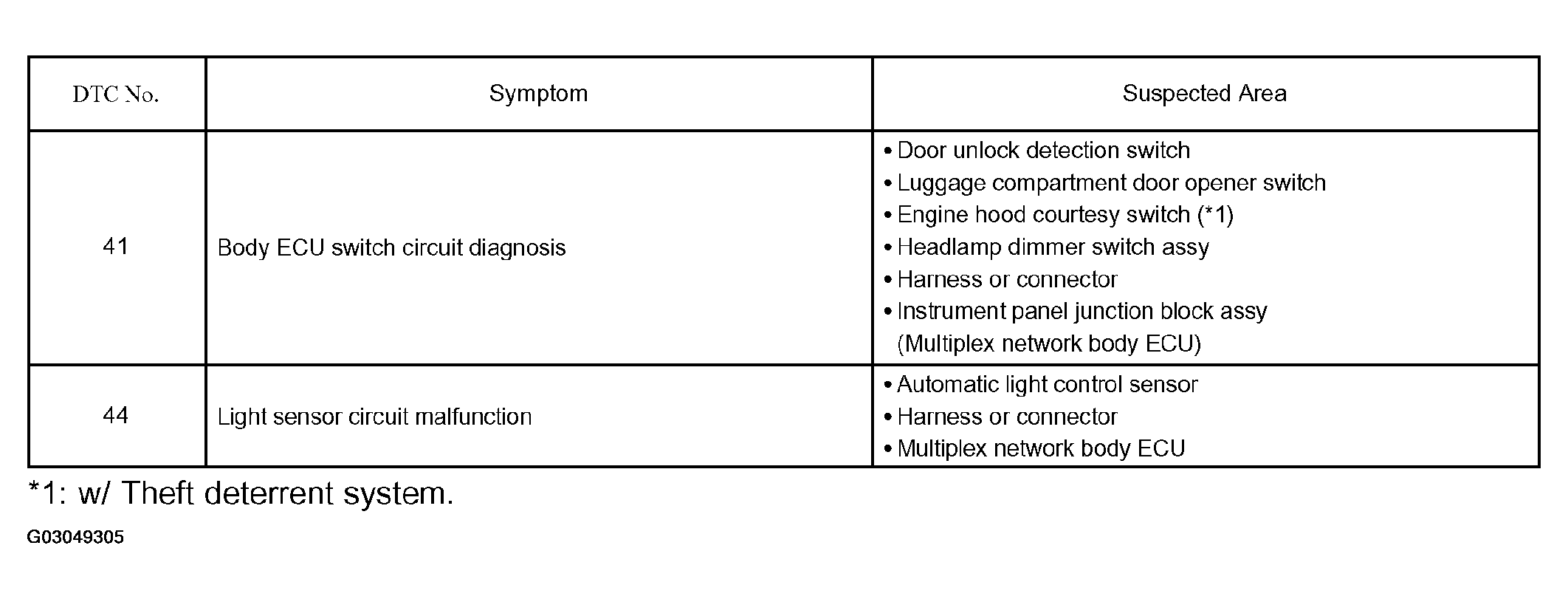 LIGHT SENSOR CIRCUIT MALFUNCTION |