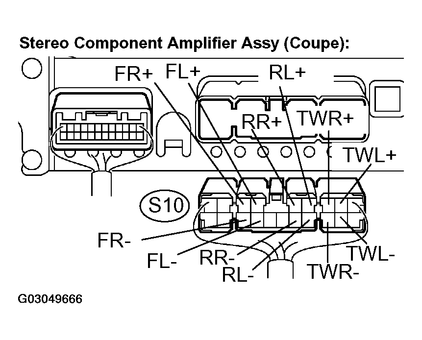 - Measure the resistance between the speakers and the stereo component amplifier assy to check for an open circuit in the wire harness.