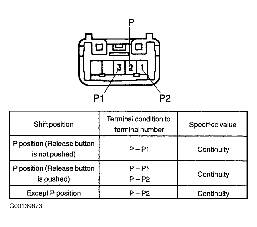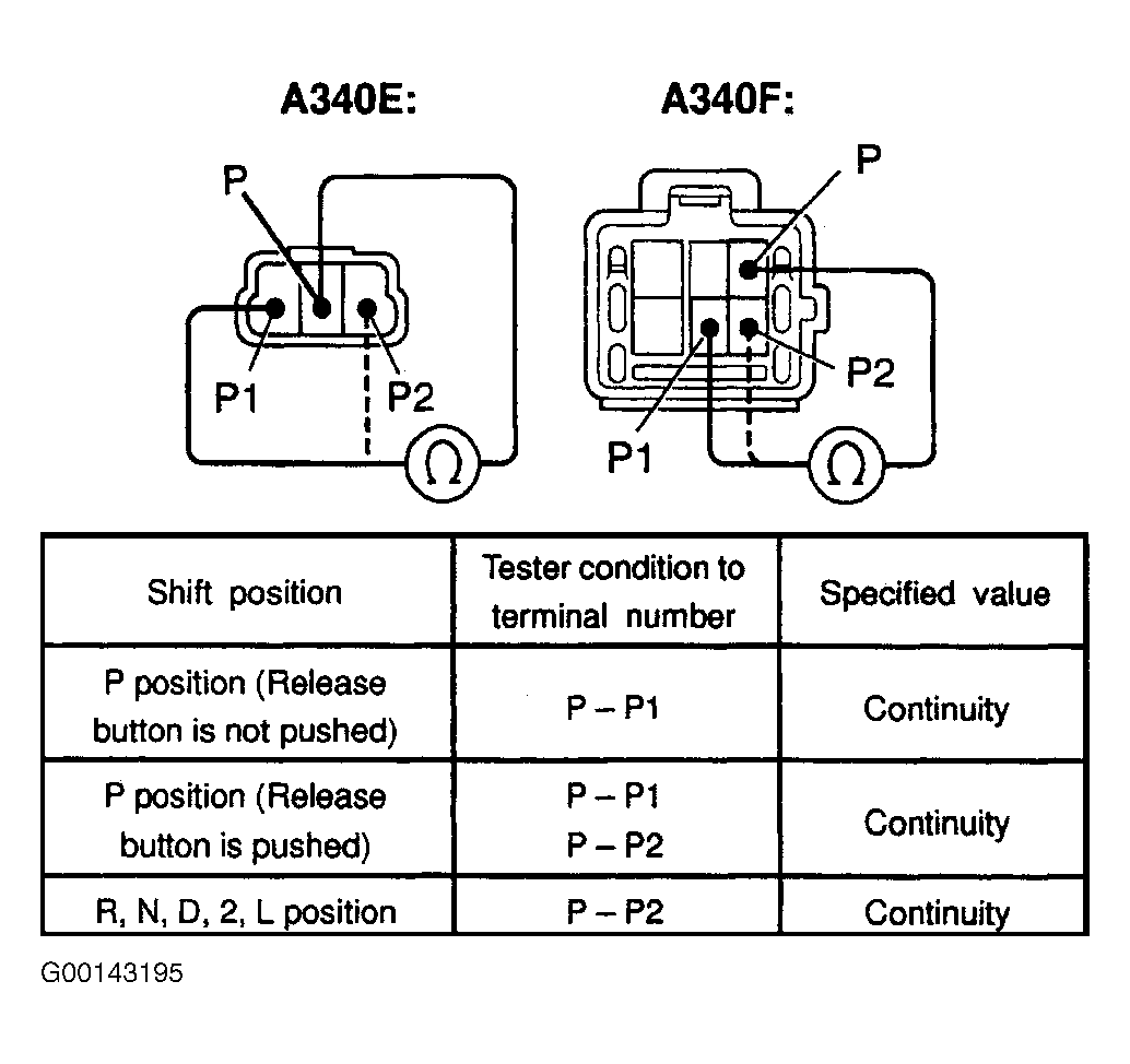 Fig 2: Checking For Continuity At Shift Interlock Control Switch (Lexus LX470 & Toyota Land Cruiser)